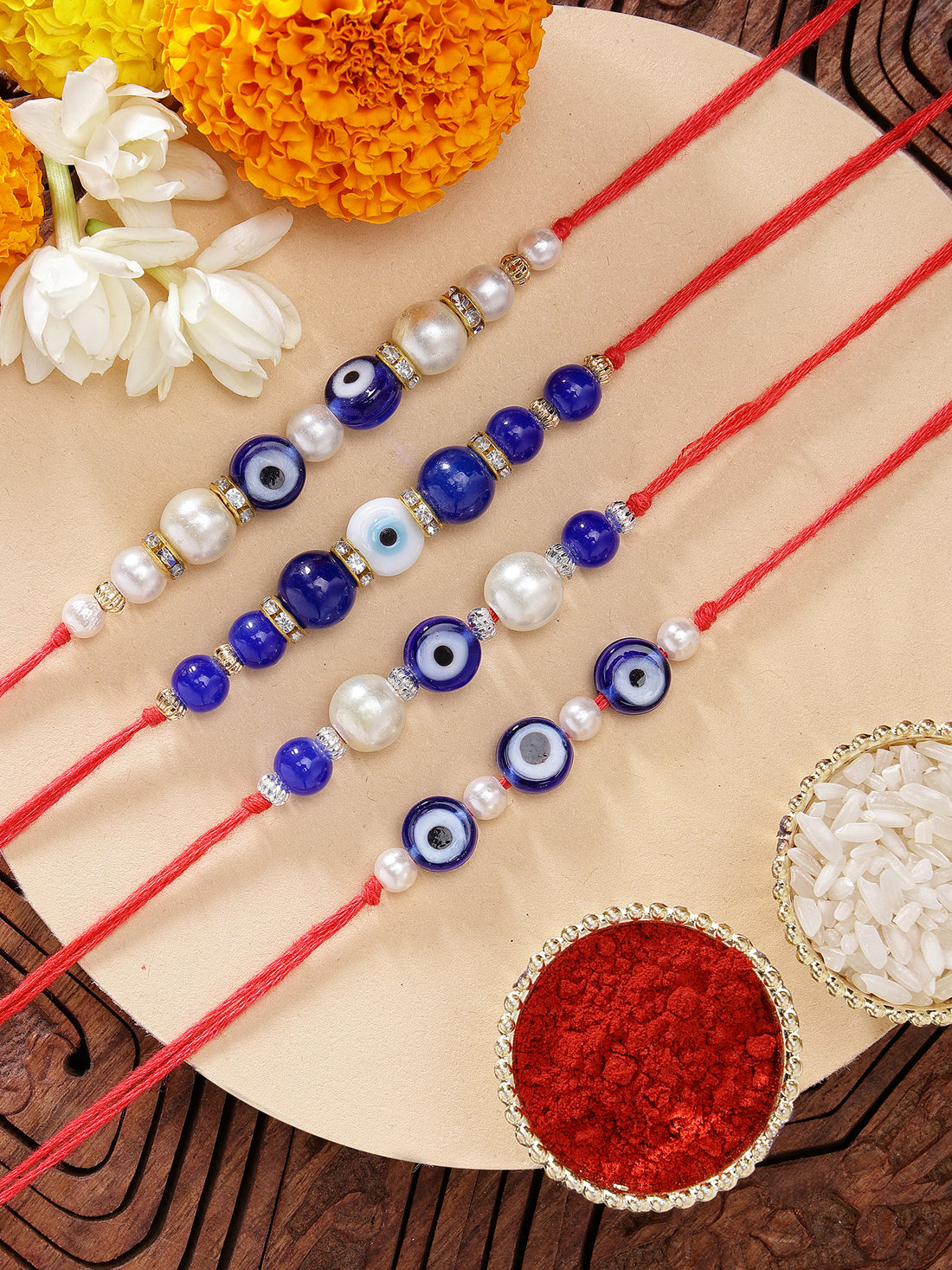 Karatcart Rakhi for Brother Set of 4 Evil Eye Handmade Rakhi with Roli & Chawal