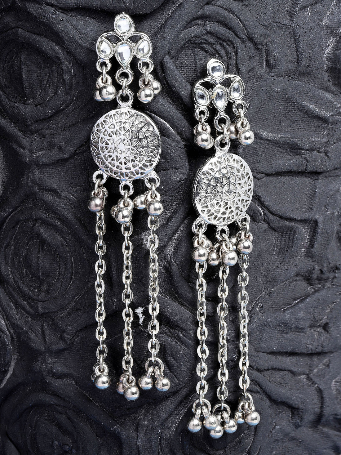 Karatcart Oxidised Silver Kundan Tassel Earringsfor Women