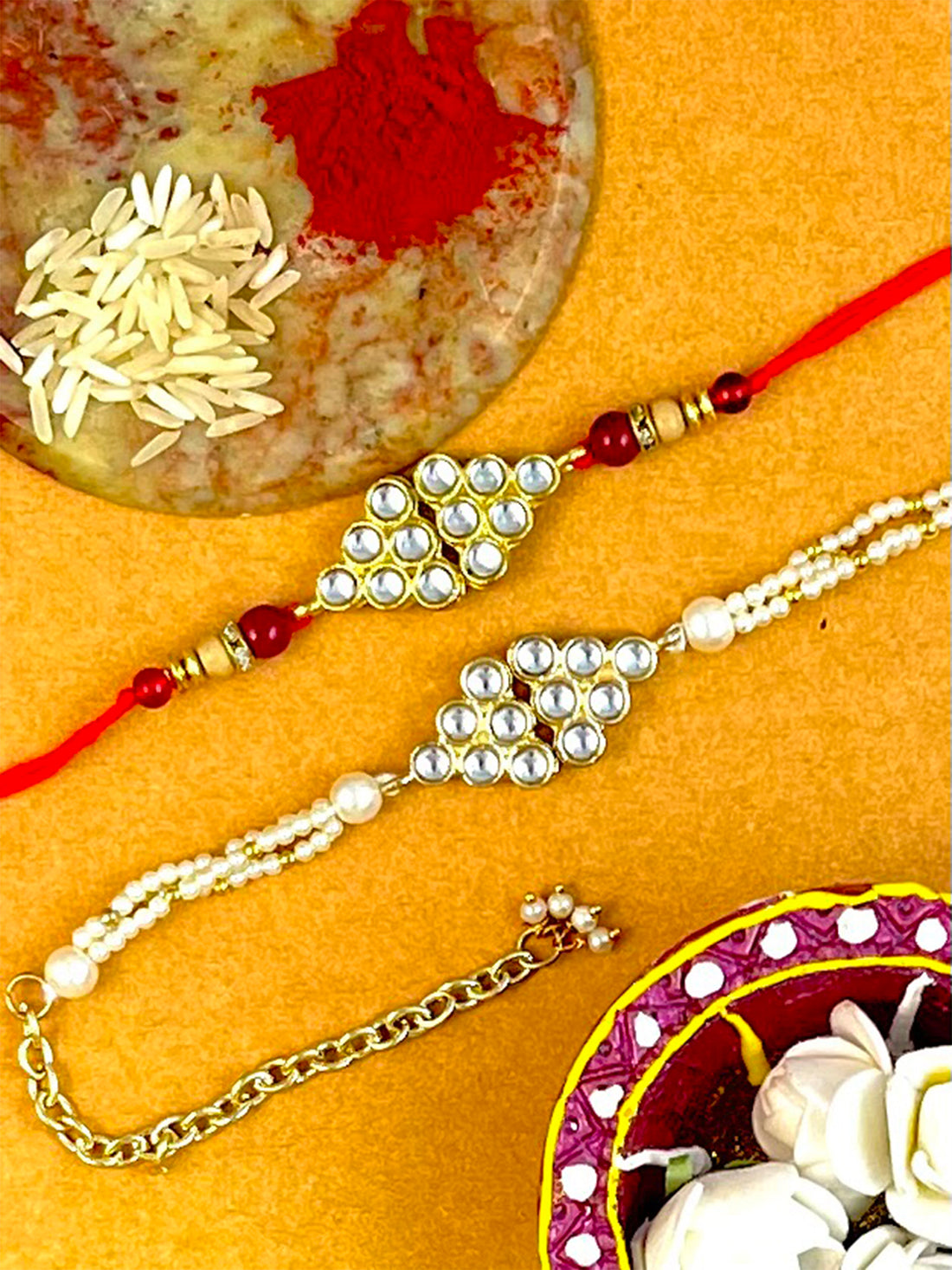Set of 2 Gold Plated Handmade Kundan Bhaiya Bhabhi Rakhi Combo