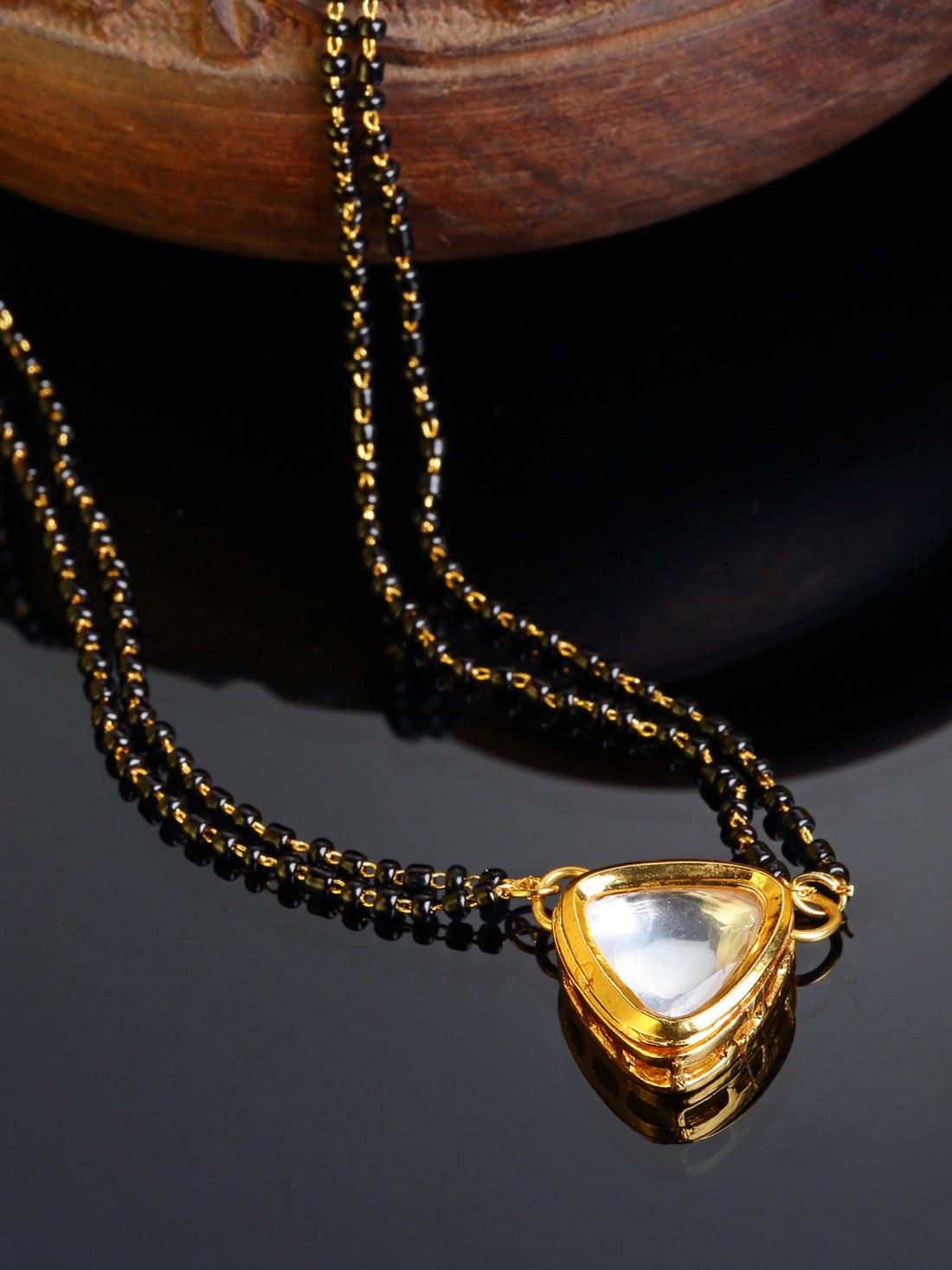 Gold Plated Triangular Polki Kundan Mangalsutra