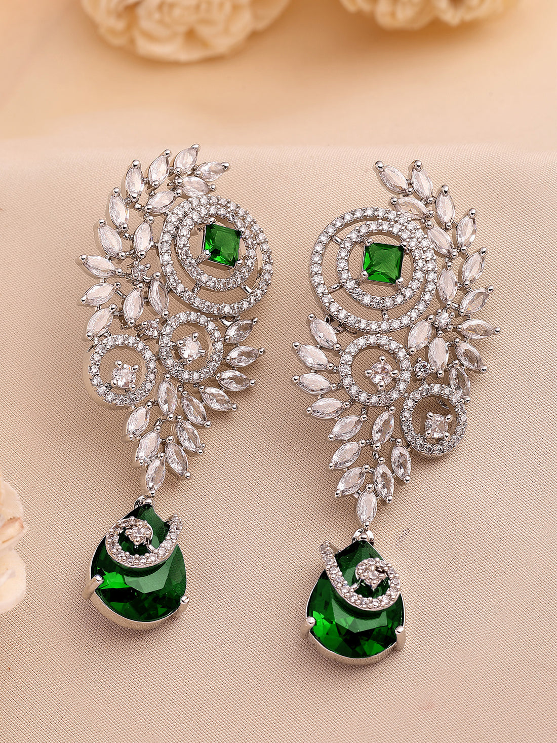 KARATCART Designer Green American Diamond Silver-Plated Drop Earrings for Women