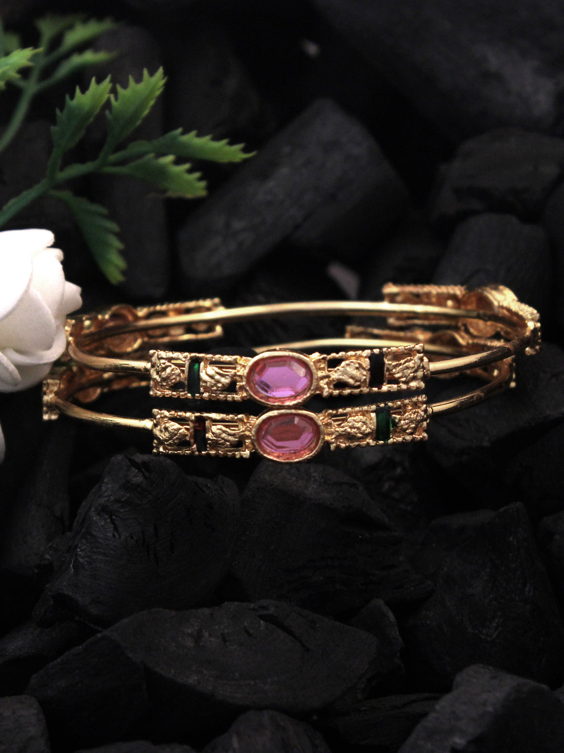 Gold Plated Pink Stone Bangle for Women. Available in 3 sizes 2-4 inches, 2-6 inches, and...