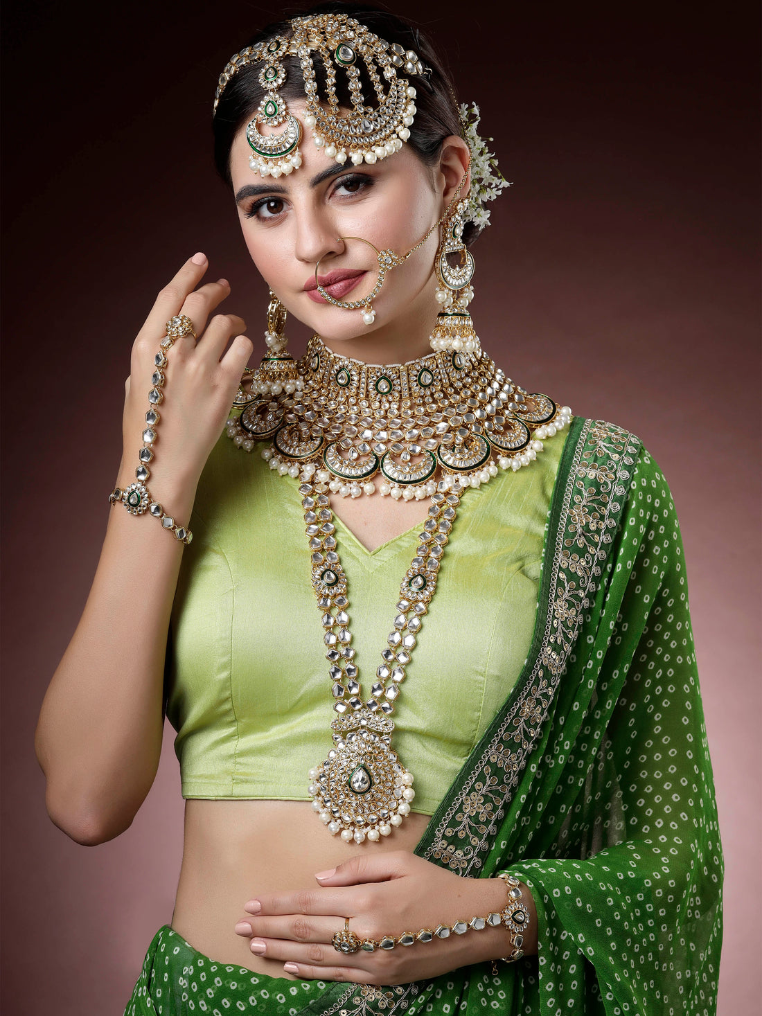 Karatcart Gold Plated Green Meena Ethnic Indian Traditional Kundan Dulhan Bridal Jewellery Set