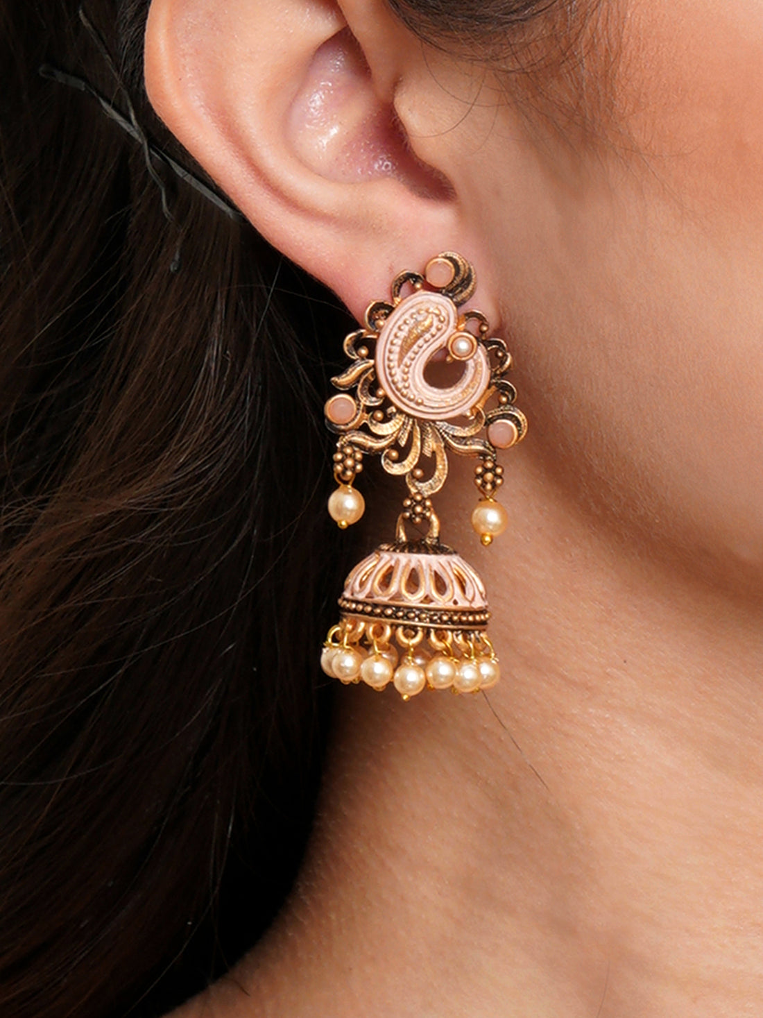 Karatcart Antique Gold Plated Peach Stone with Meena Jhumki Earrings for Women