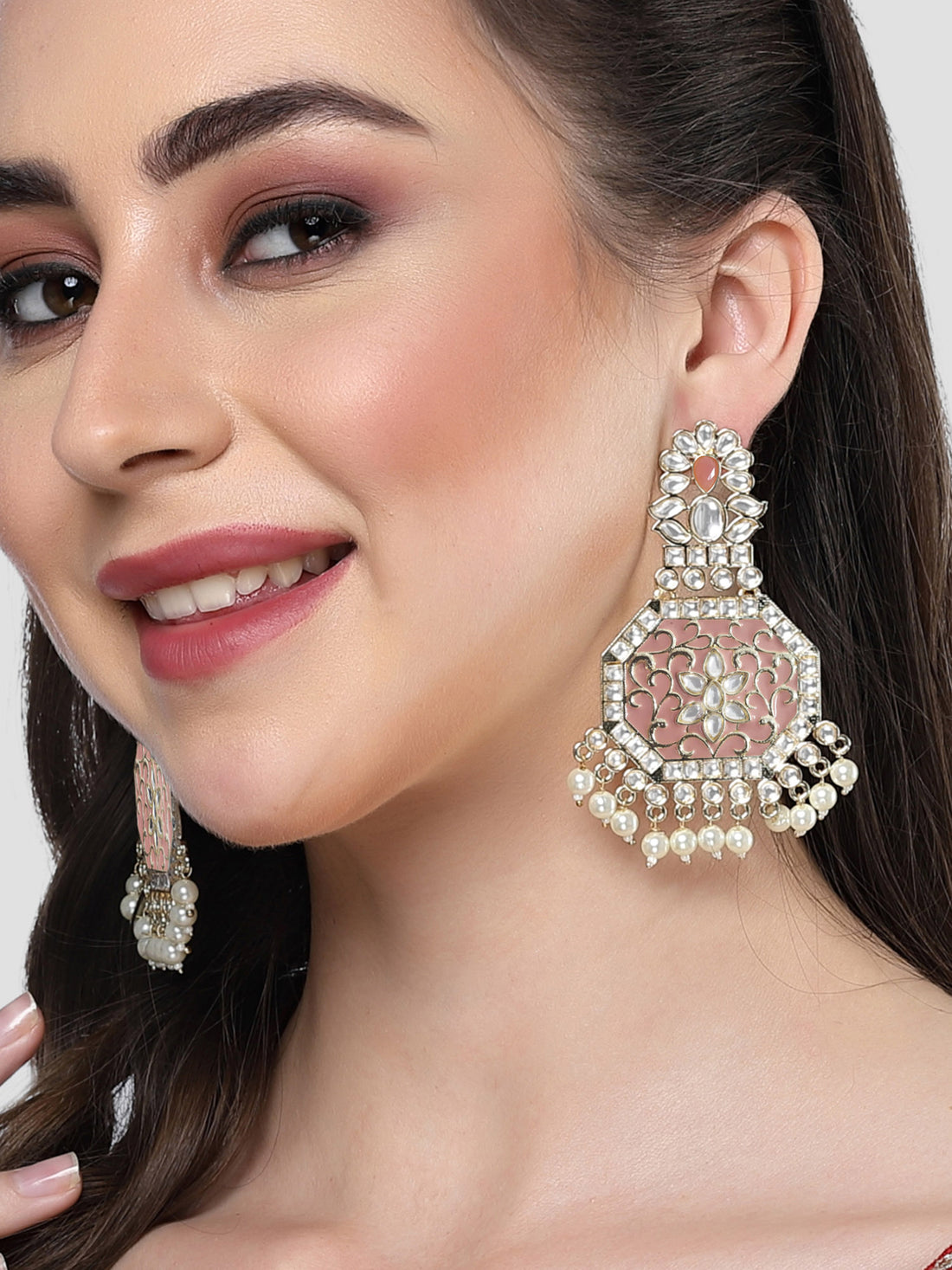Karatcart Gold Plated Pink Crystal Polki Kundan Drop Earrings for Women