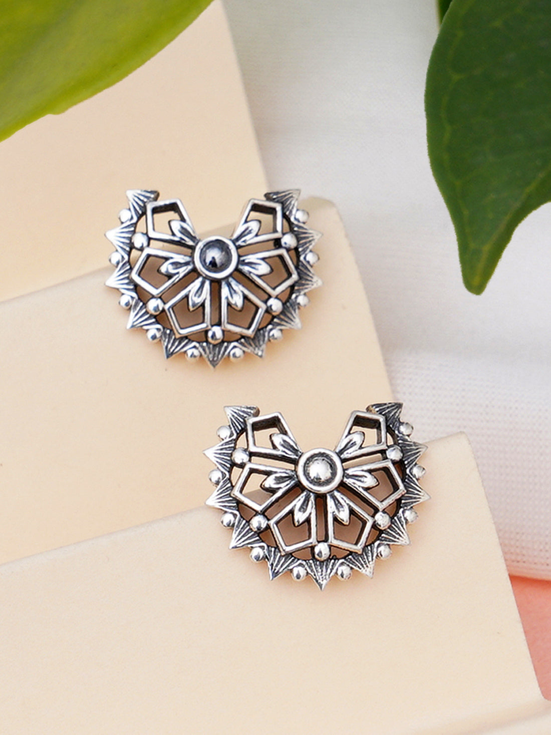 KUNUZ 925 Sterling Silver Oxidised Antique Stud Earrings