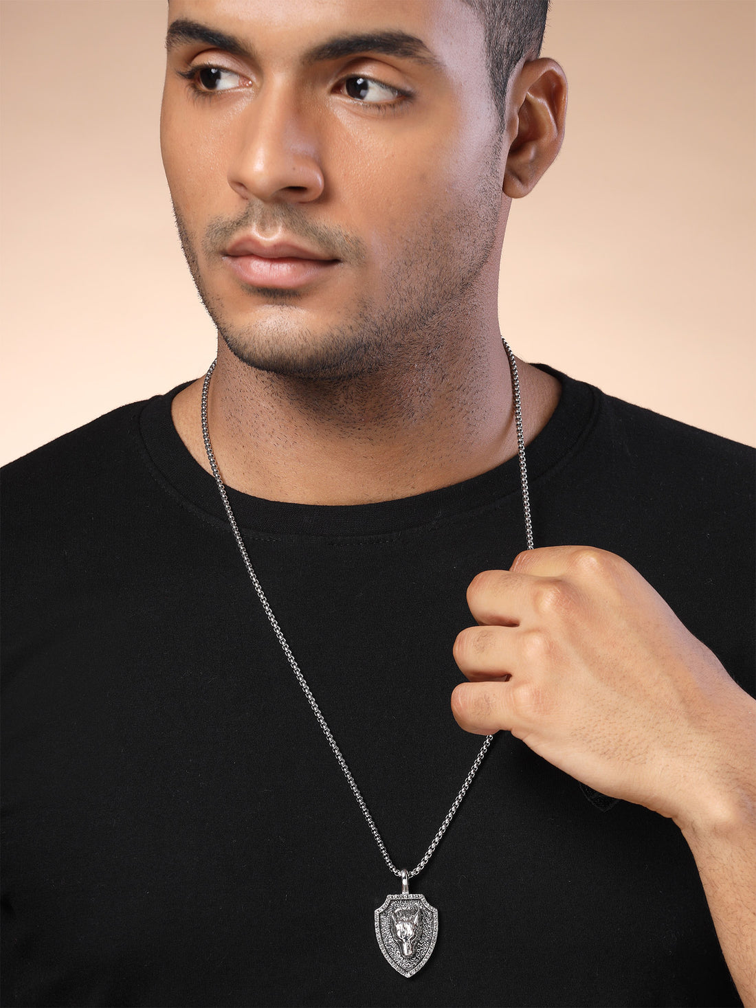 Bohey by KARATCART Silver Plated Wolf Metal Chain Pendant for Men