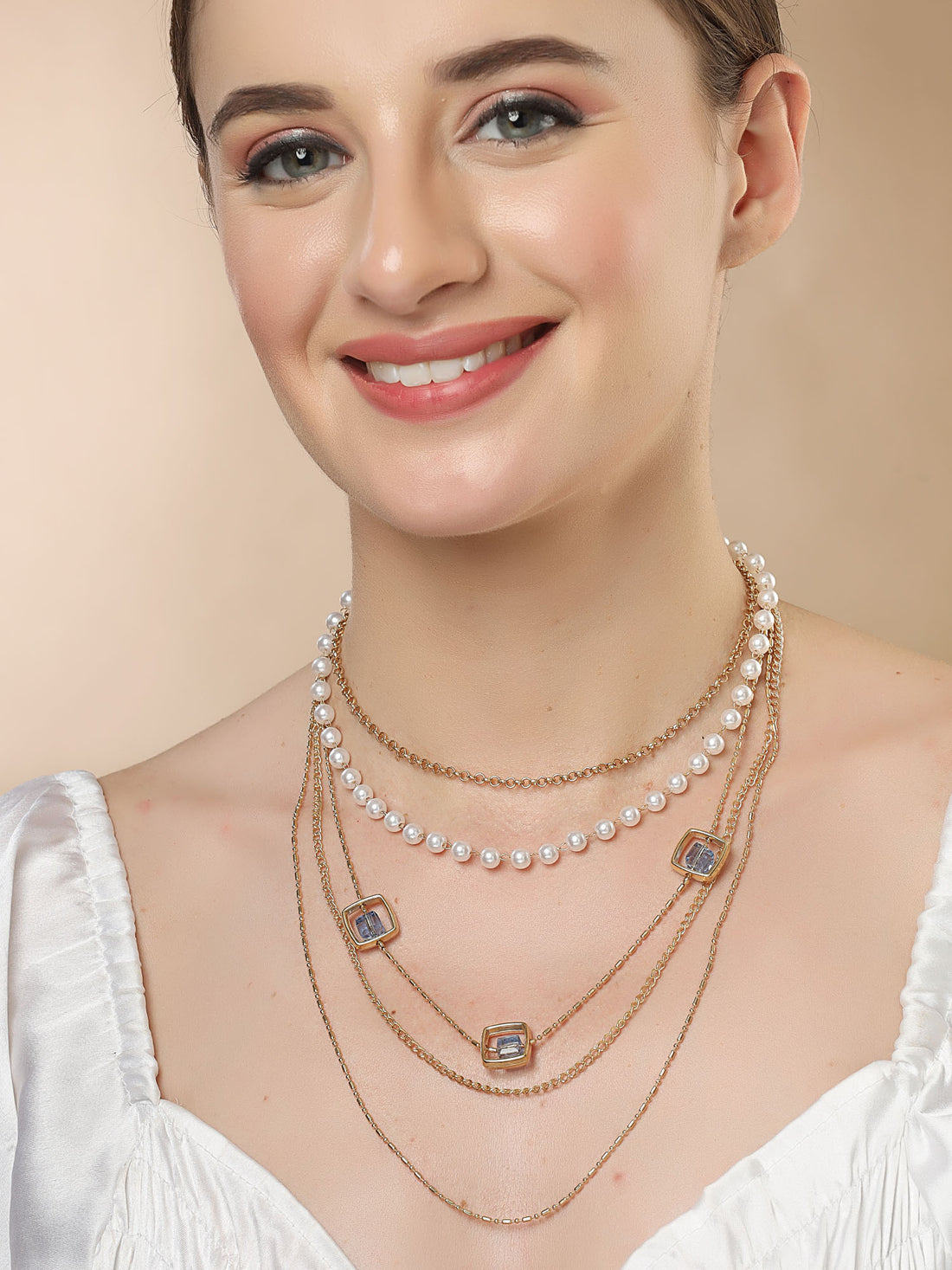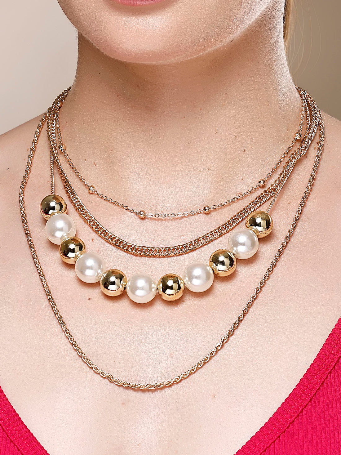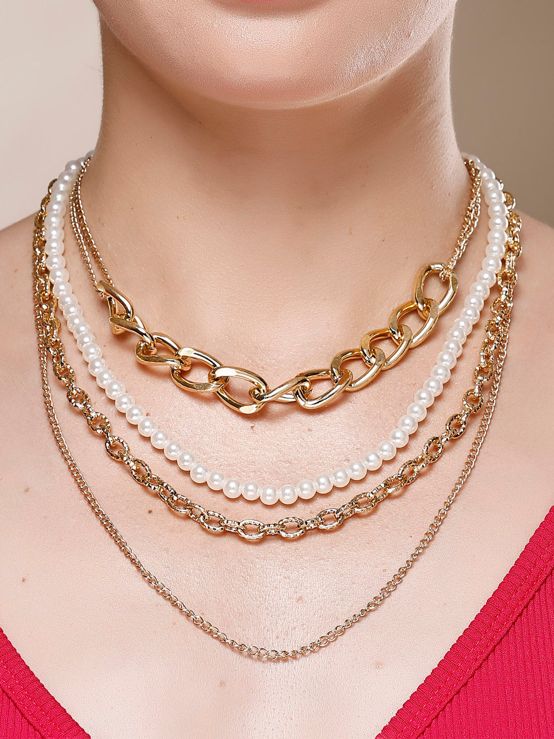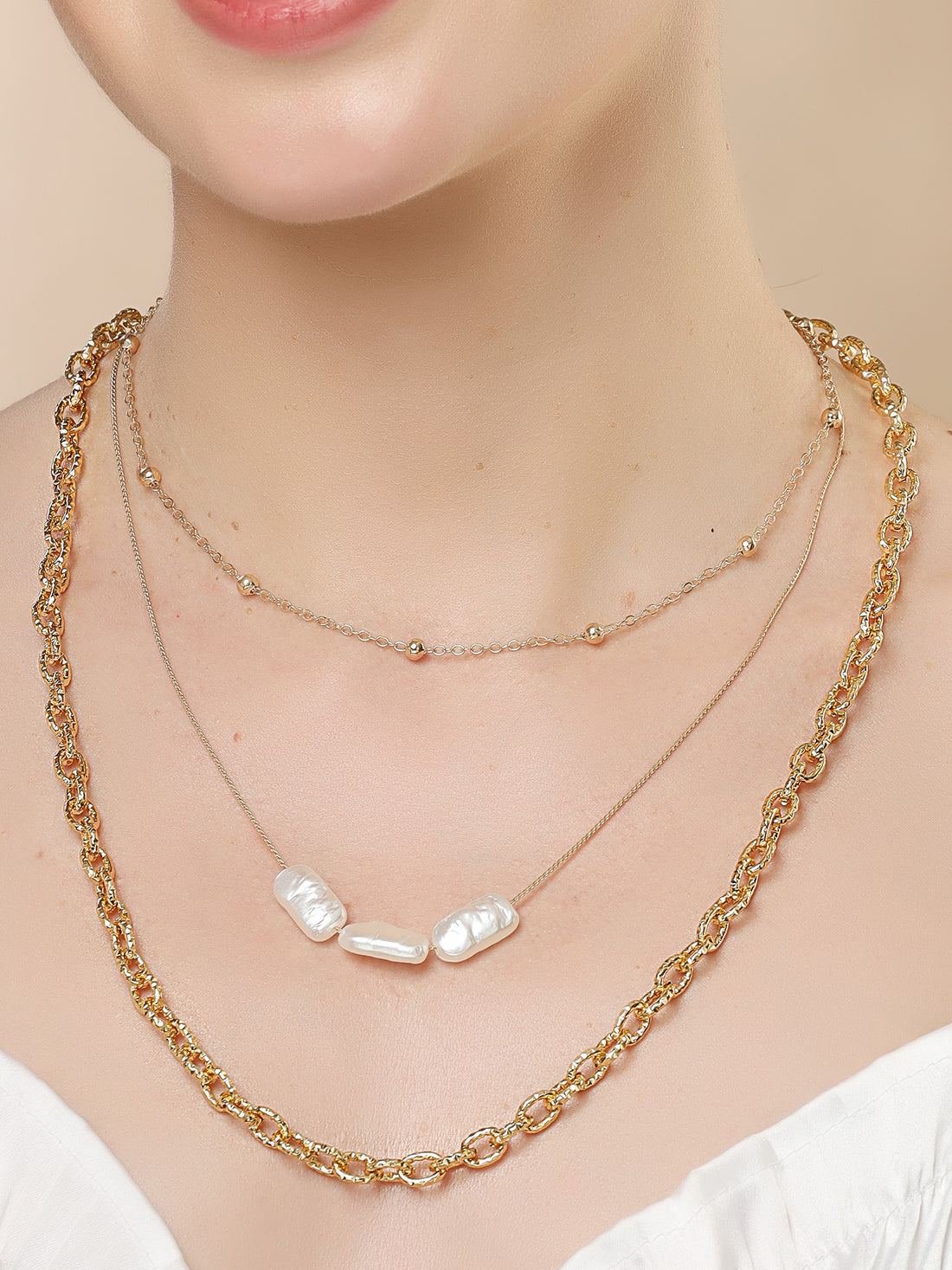 Bohey by KARATCART Gold-Plated Pearl Multilayer Chain Necklace for Women