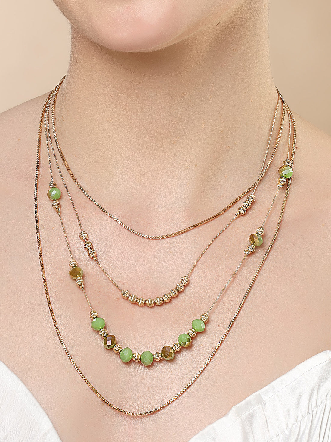 Bohey by KARATCART Gold-Plated Green Ctystal Multilayer Chain Necklace for Women