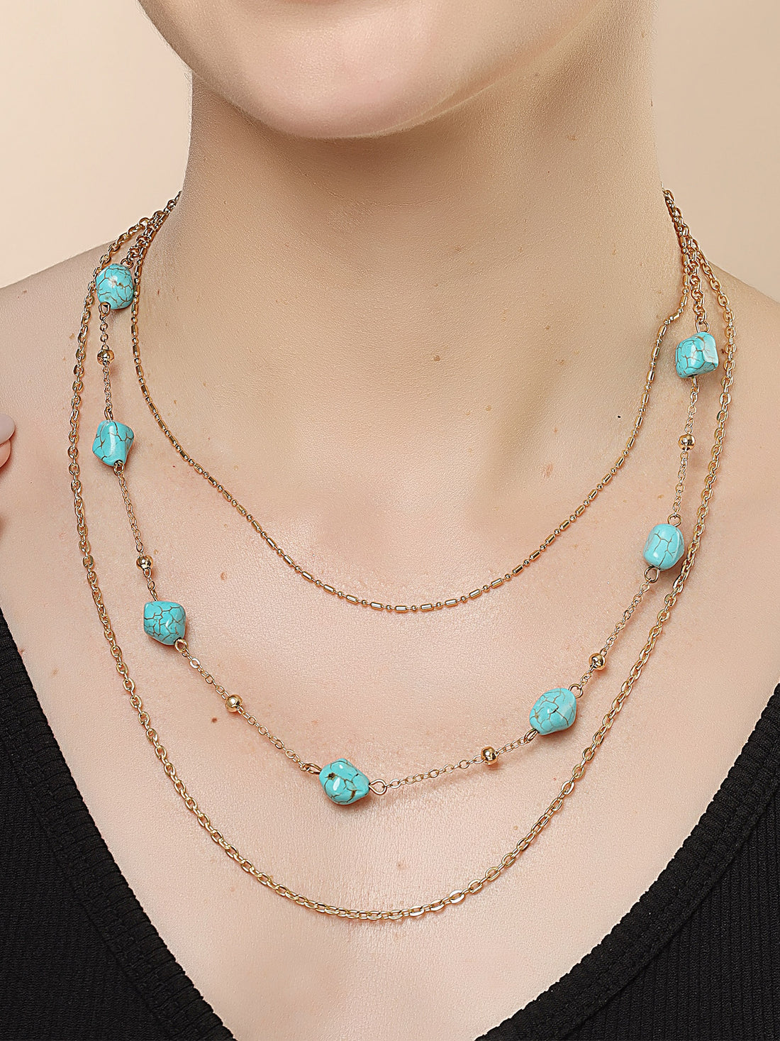 Bohey by KARATCART Gold-Plated Turquoise Multilayer Chain Necklace for Women