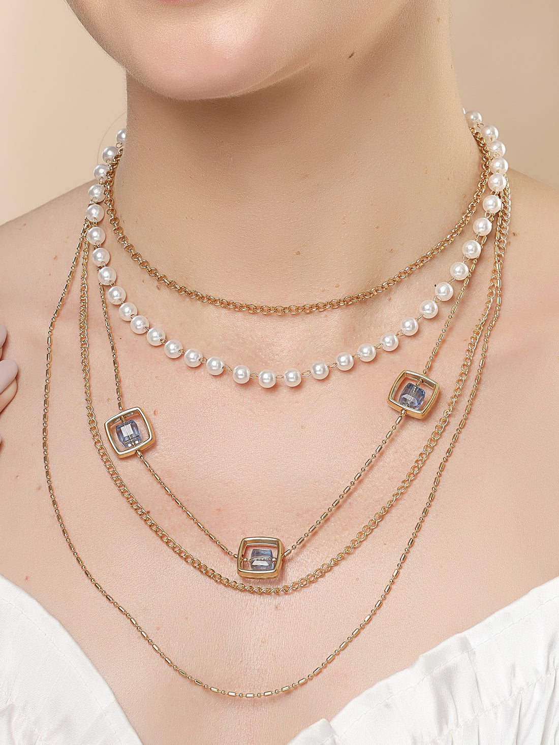Bohey by KARATCART Gold-Plated Grey Stone Multilayer Chain Necklace for Women