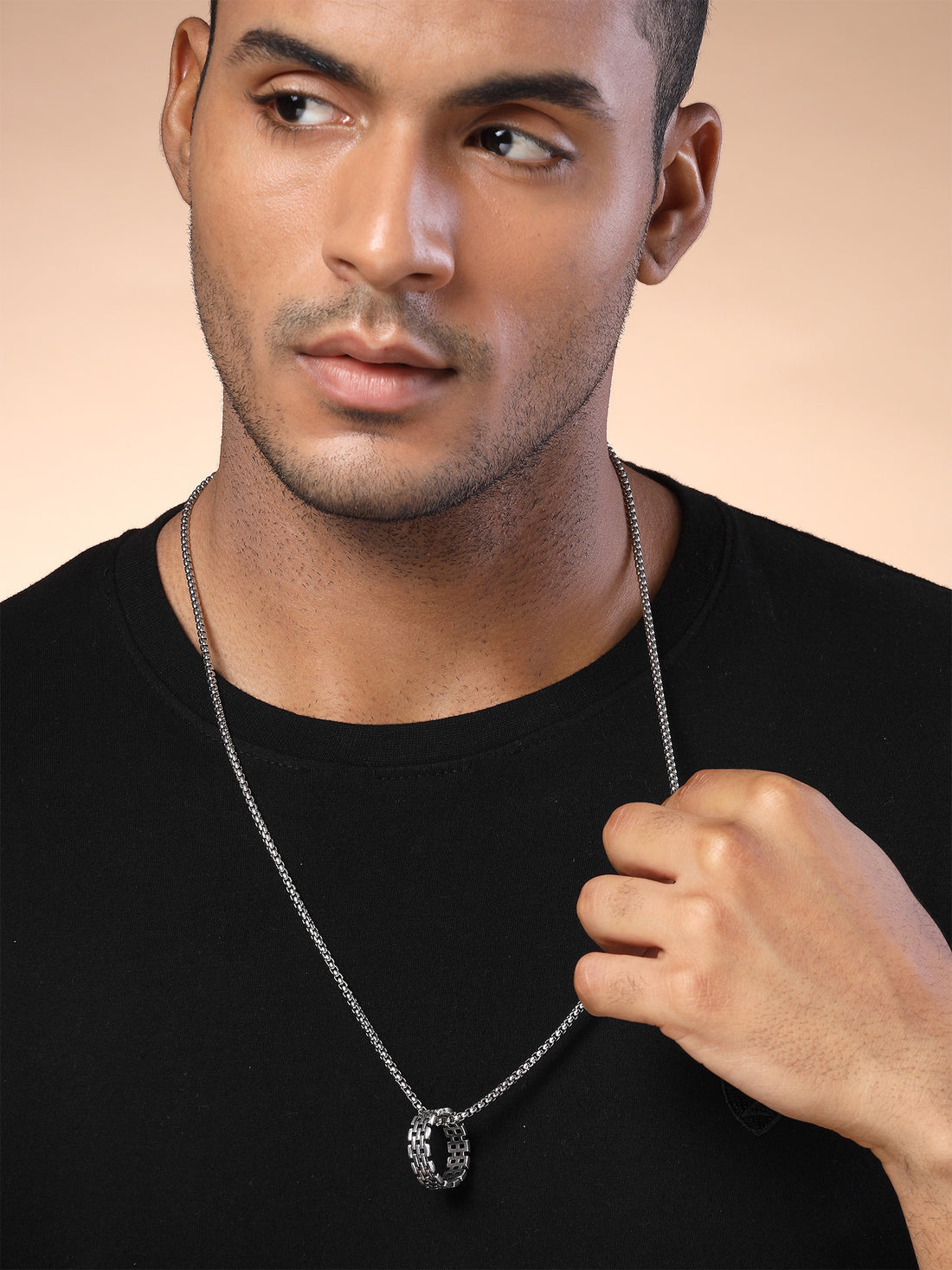 Bohey by KARATCART Silver Plated Metal Ring Chain Pendant for Men