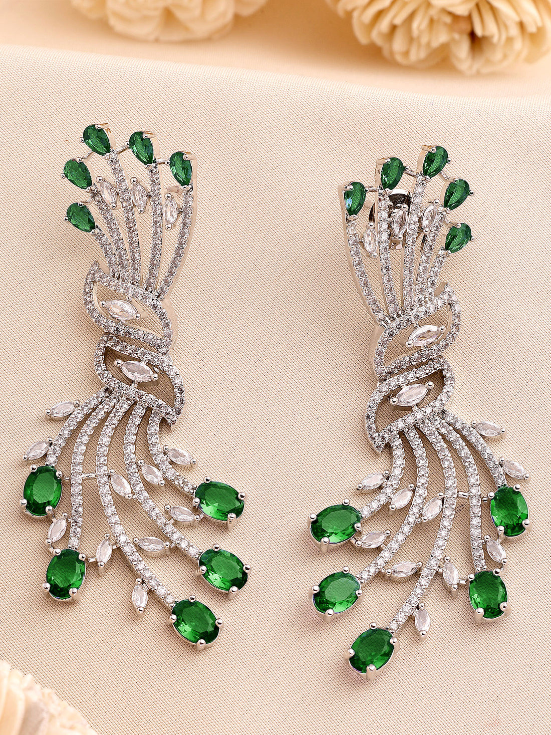 KARATCART Stylish Green American Diamond Silver-Plated Premium Drop Earrings for Women