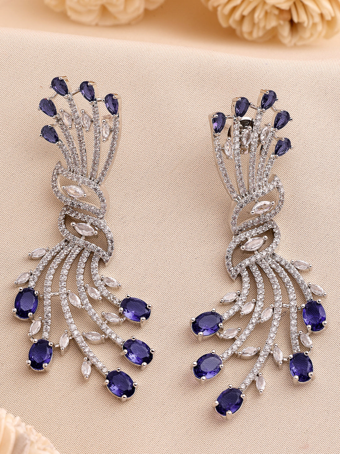 KARATCART Stylish Purple American Diamond Silver-Plated Premium Drop Earrings for Women