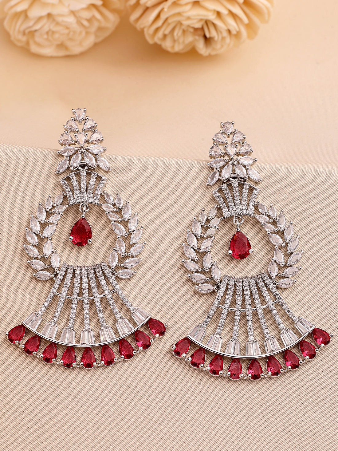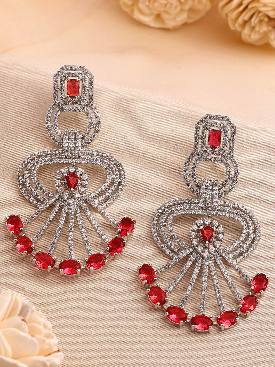 KARATCART Fashionable Red American Diamond Silver-Plated Drop Earrings for Women