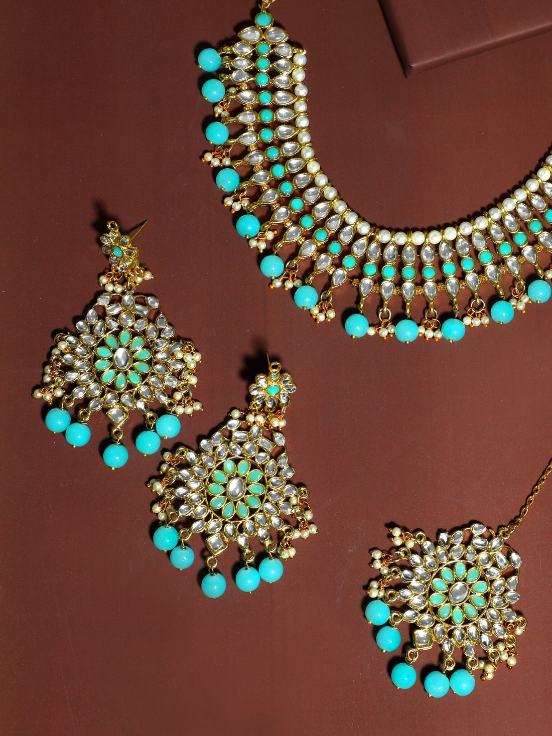 Gold and Silver Tone Faux Kundan Mint Blue Necklace Set. Best when Paired with any...