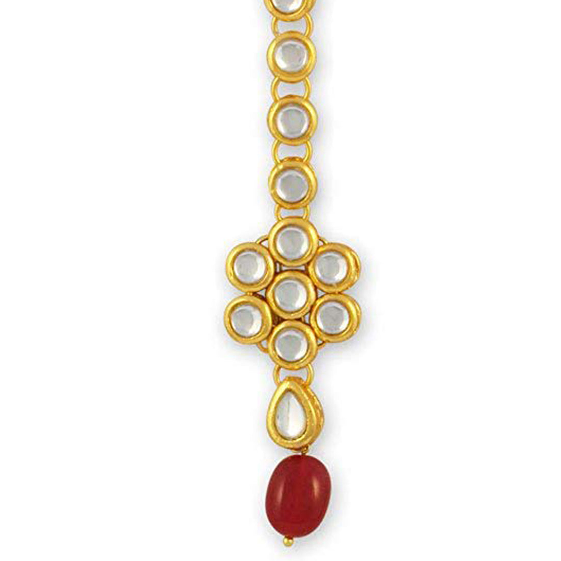 Traditional Gold Plated Red Stone Kundan Maangtikka for Women