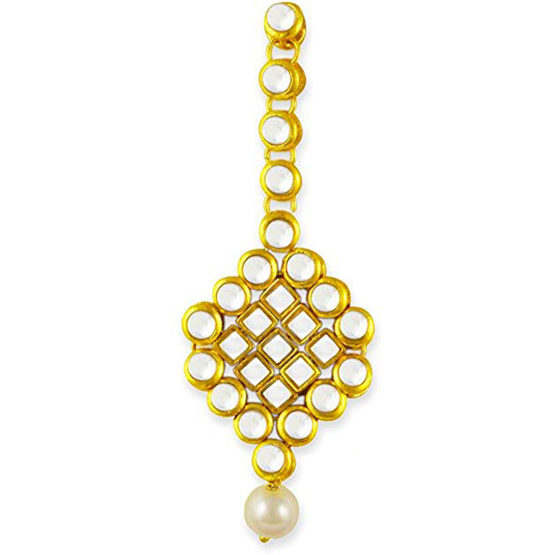 Traditional Gold Plated Pearl Beads Kundan Maangtikka for Women