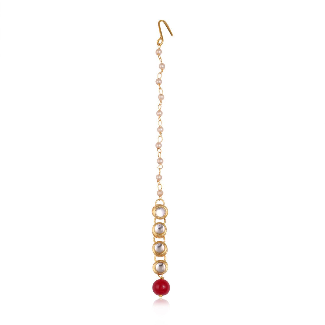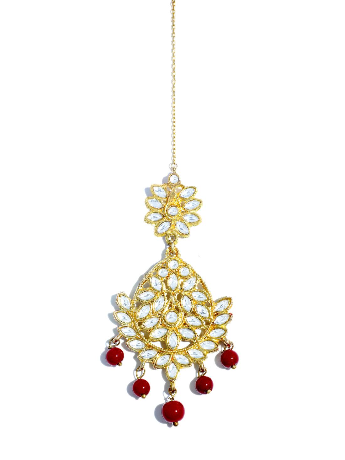 Traditional Gold Plated Red Beads Kundan Maangtikka for Women
