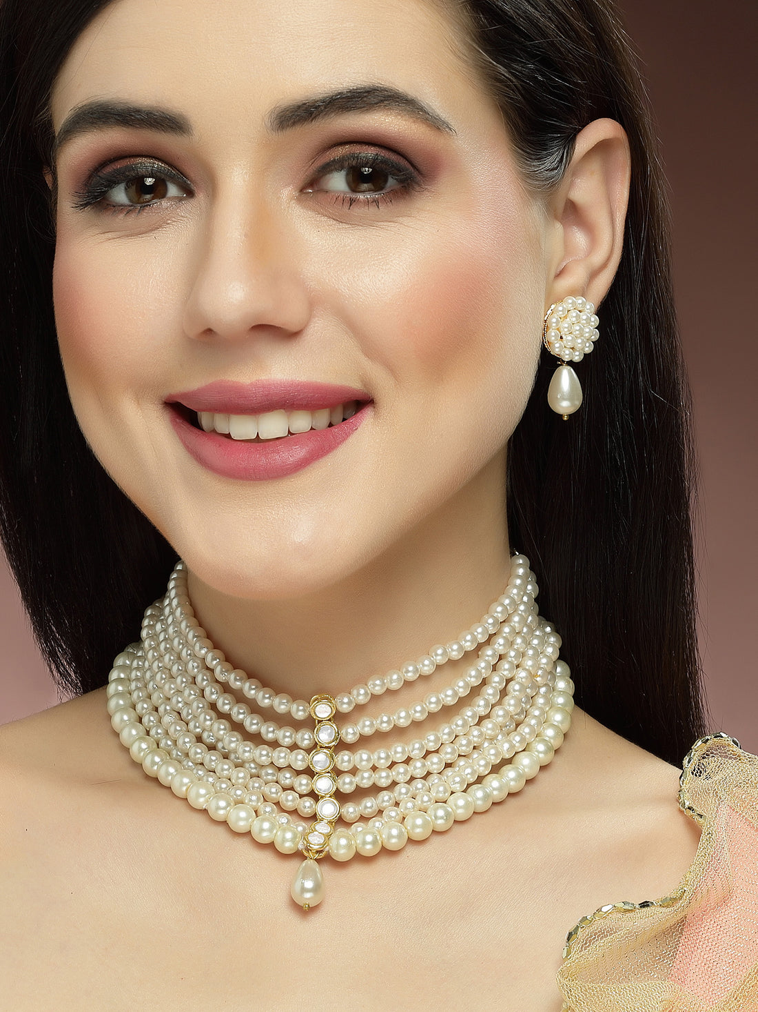 KARATCART Gold Plated Pearl Choker White Jewellery Set for Women