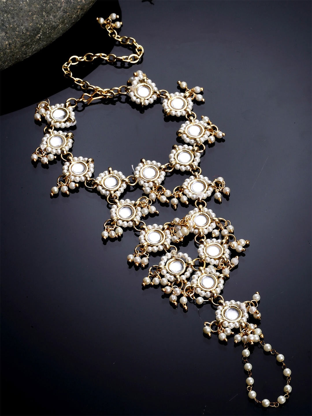 Women Gold-Toned & White Kundan Handcrafted Gold-Plated Hathphool