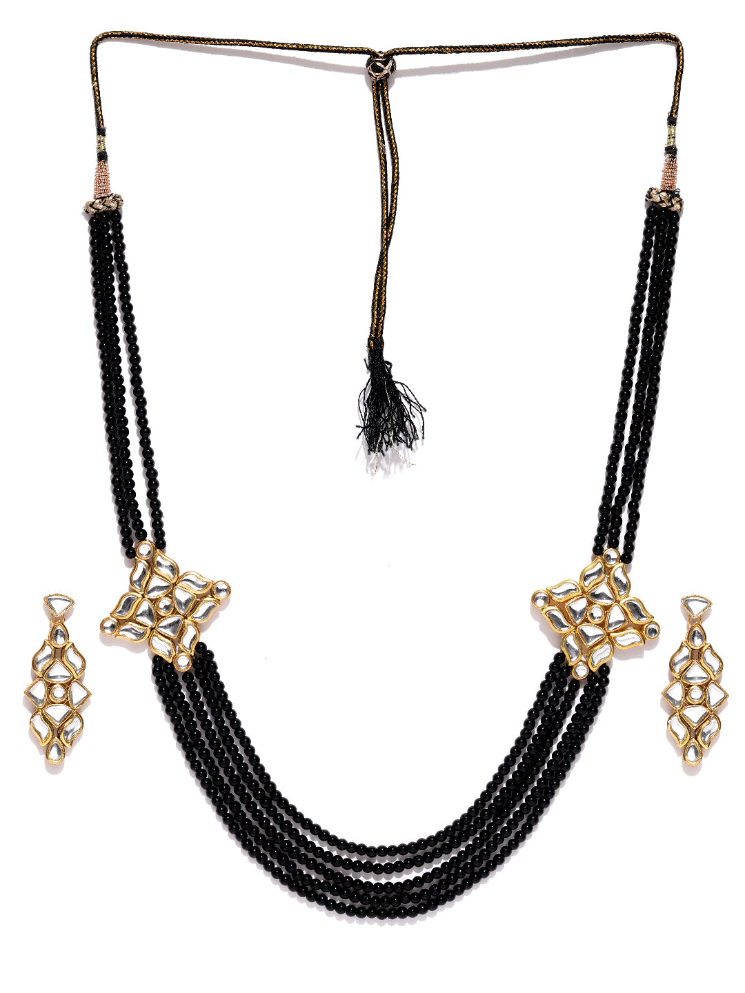 Black Gold-Plated Kundan Studded Multi-Stranded Handcrafted Rani Haar Necklace Set