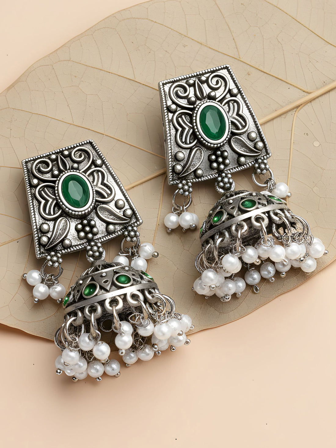 Karatcart Oxidised Silver Green Tumble Jhumki Earring for Women