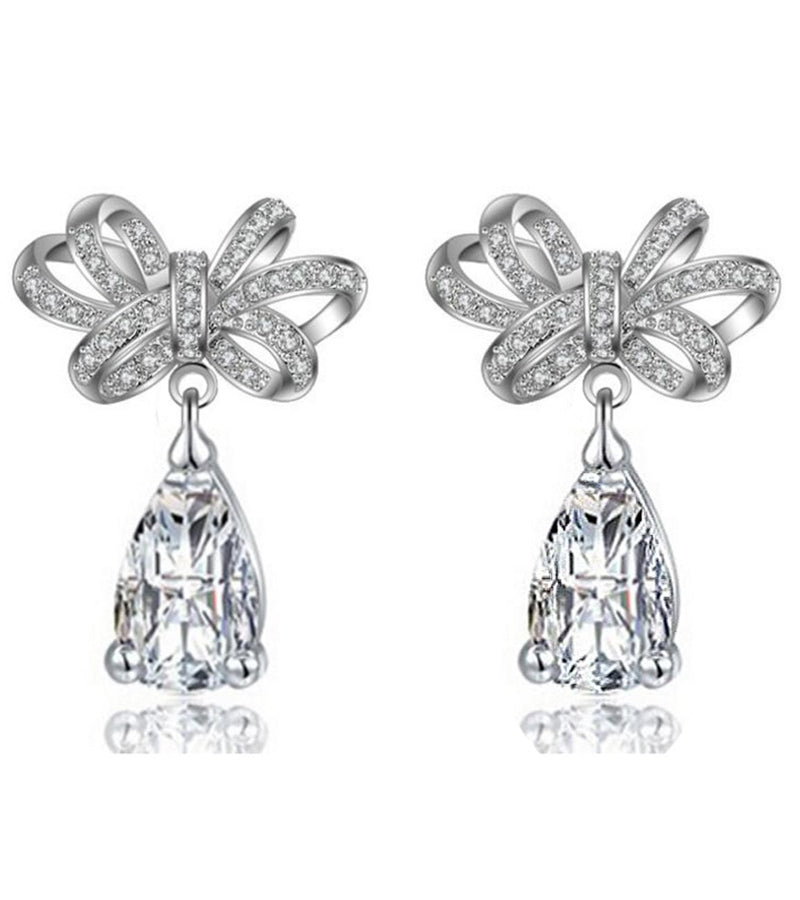 Karatcart Silver Plated Blue Drop Cubic Zirconia Earrings for Women