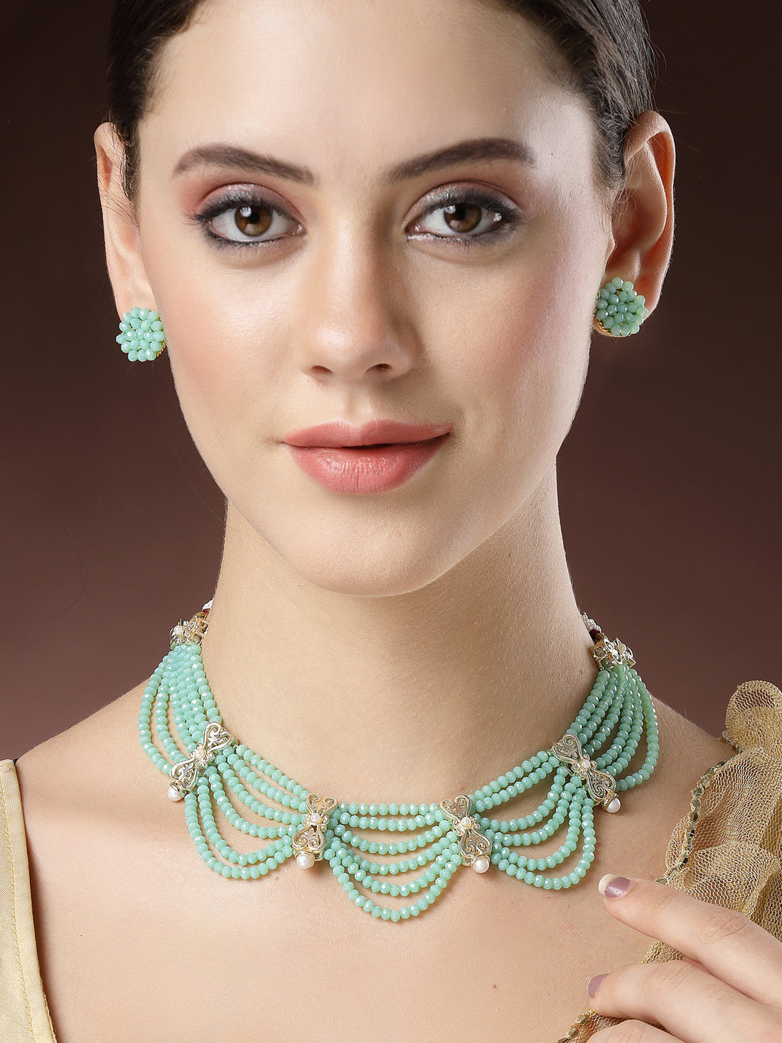 Karatcart Lime Green Crystal Gold Plated Kundan Necklace Set for Women