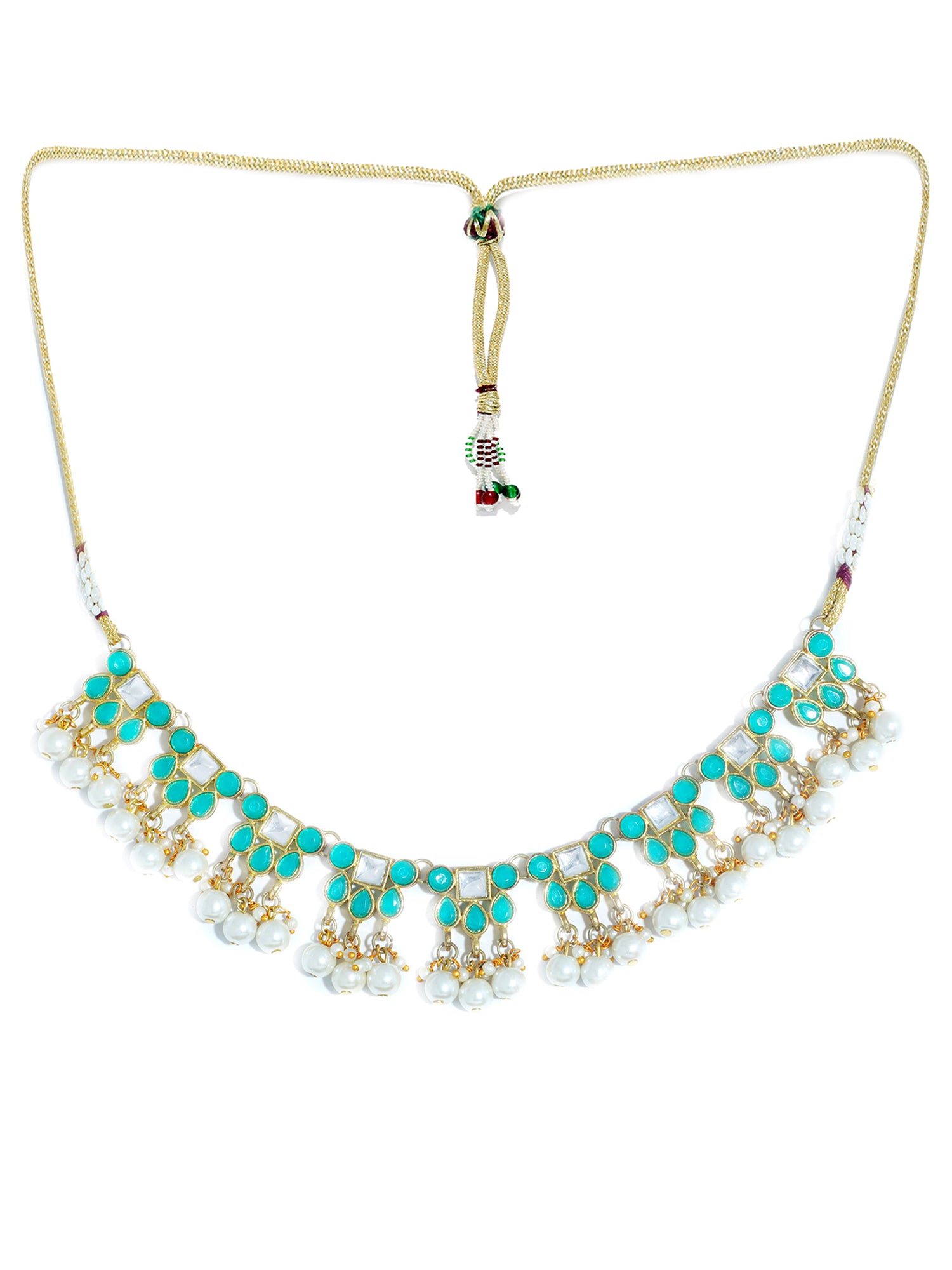 KARATCART Gold Plated Light Blue Kundan Choker Jewellery Set for Women
