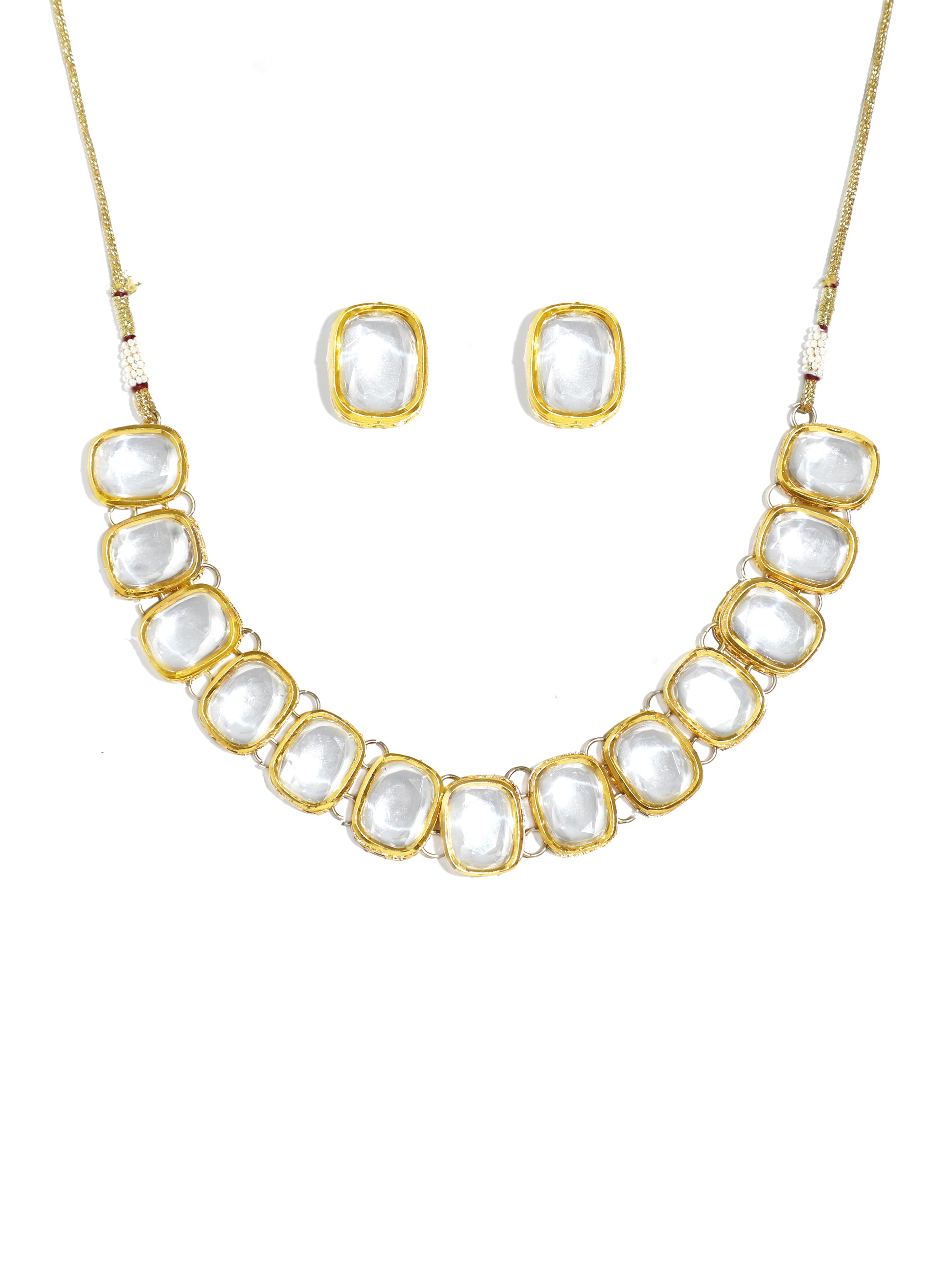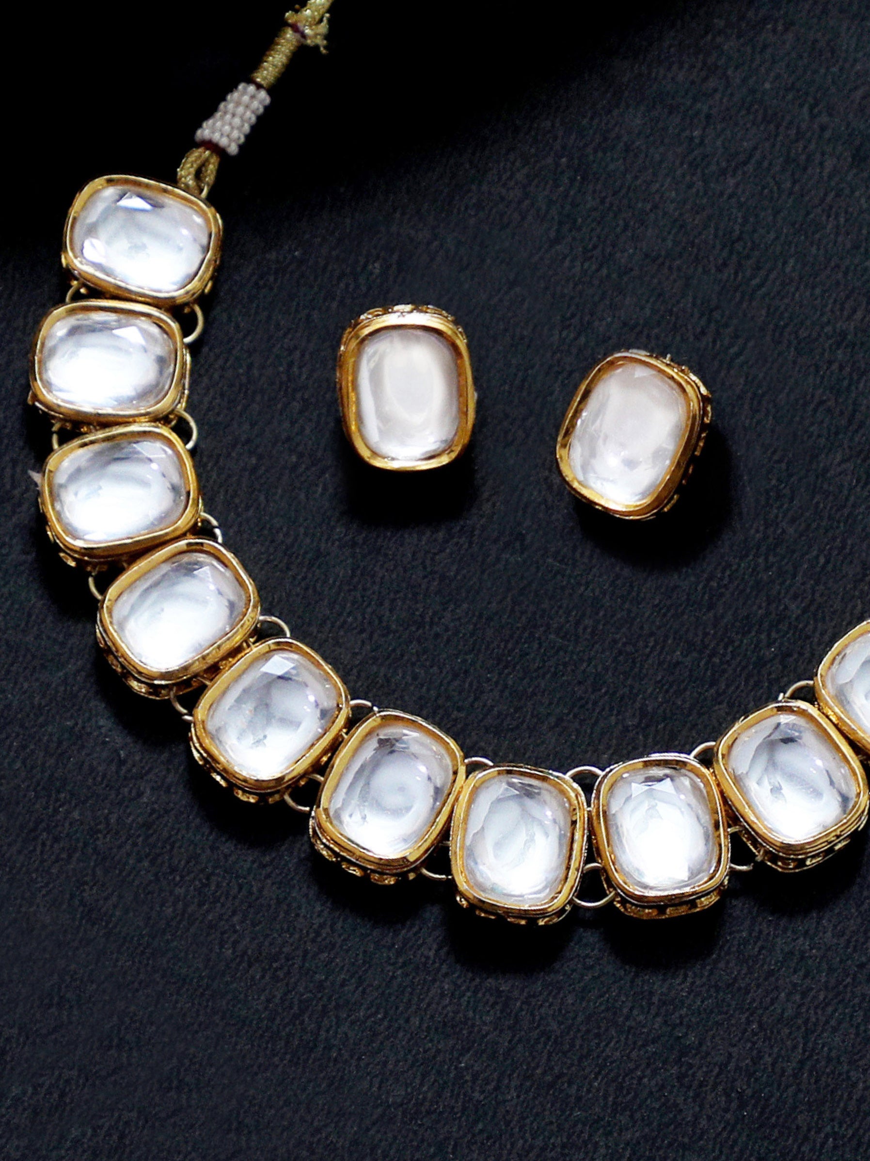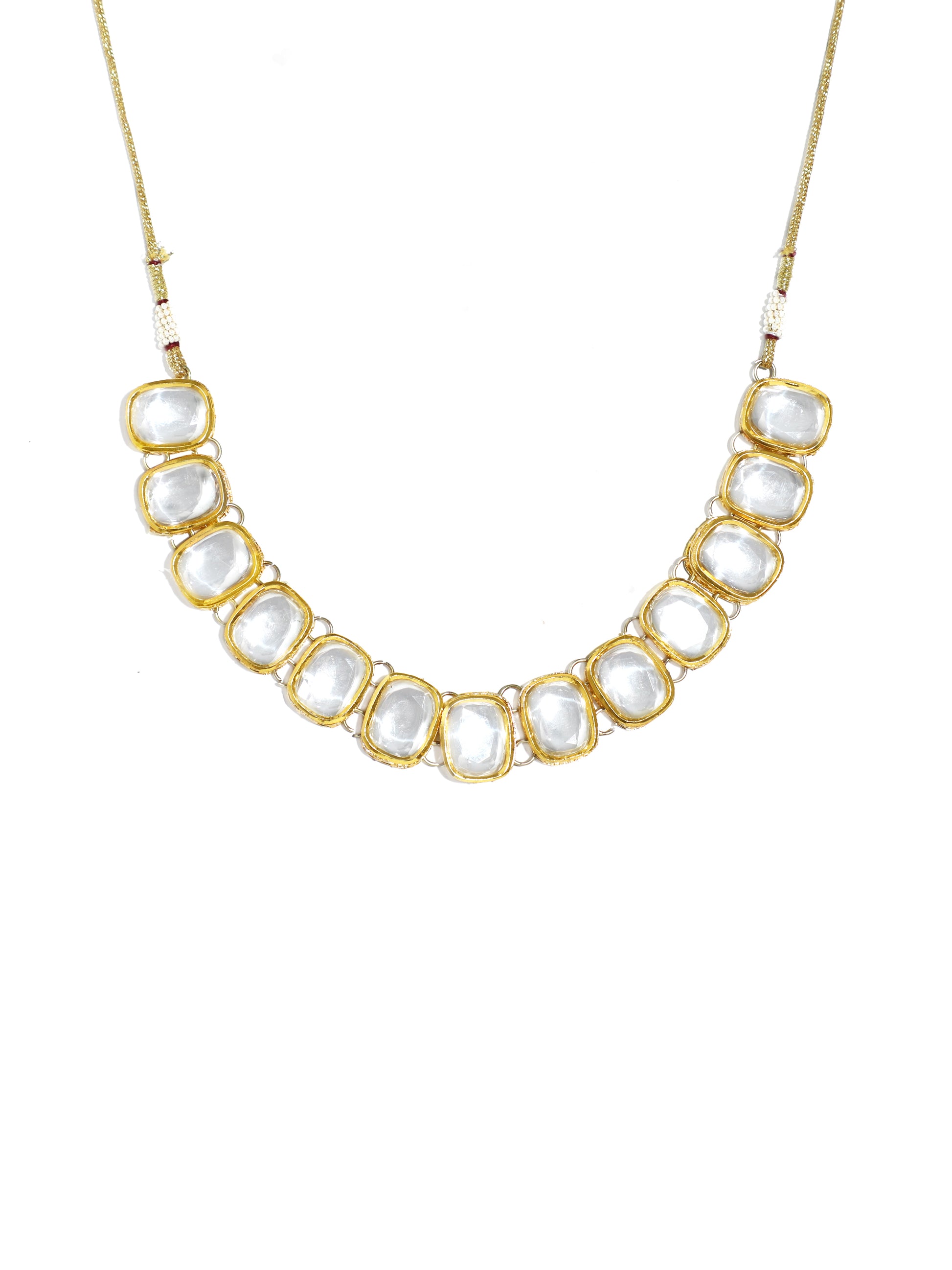 - Traditional Gold Plated Polki Kundan Choker Necklace with Stud Earrings for Women. It's Five Layer Micro Gold Plated for High Durability. Intricate high polish creates glamorous reflections and adds a luxurious look. Perfect for Weddings, Festivals, Traditional Occasions. Best when paired with any Indian outfit.