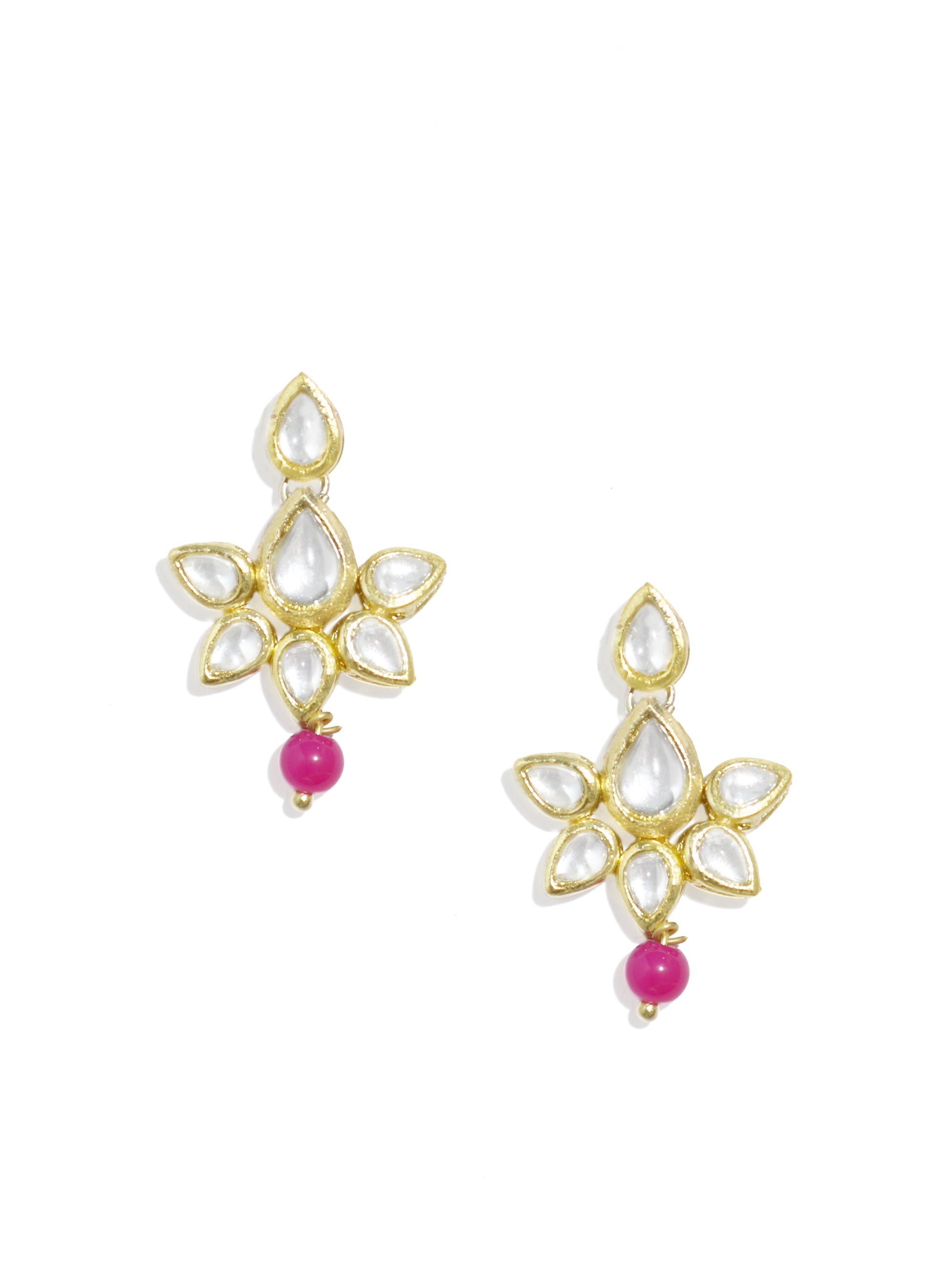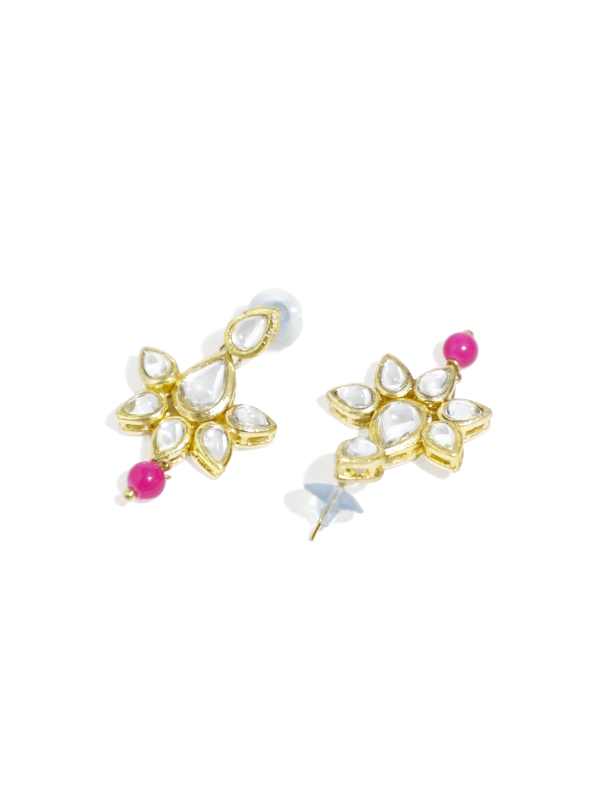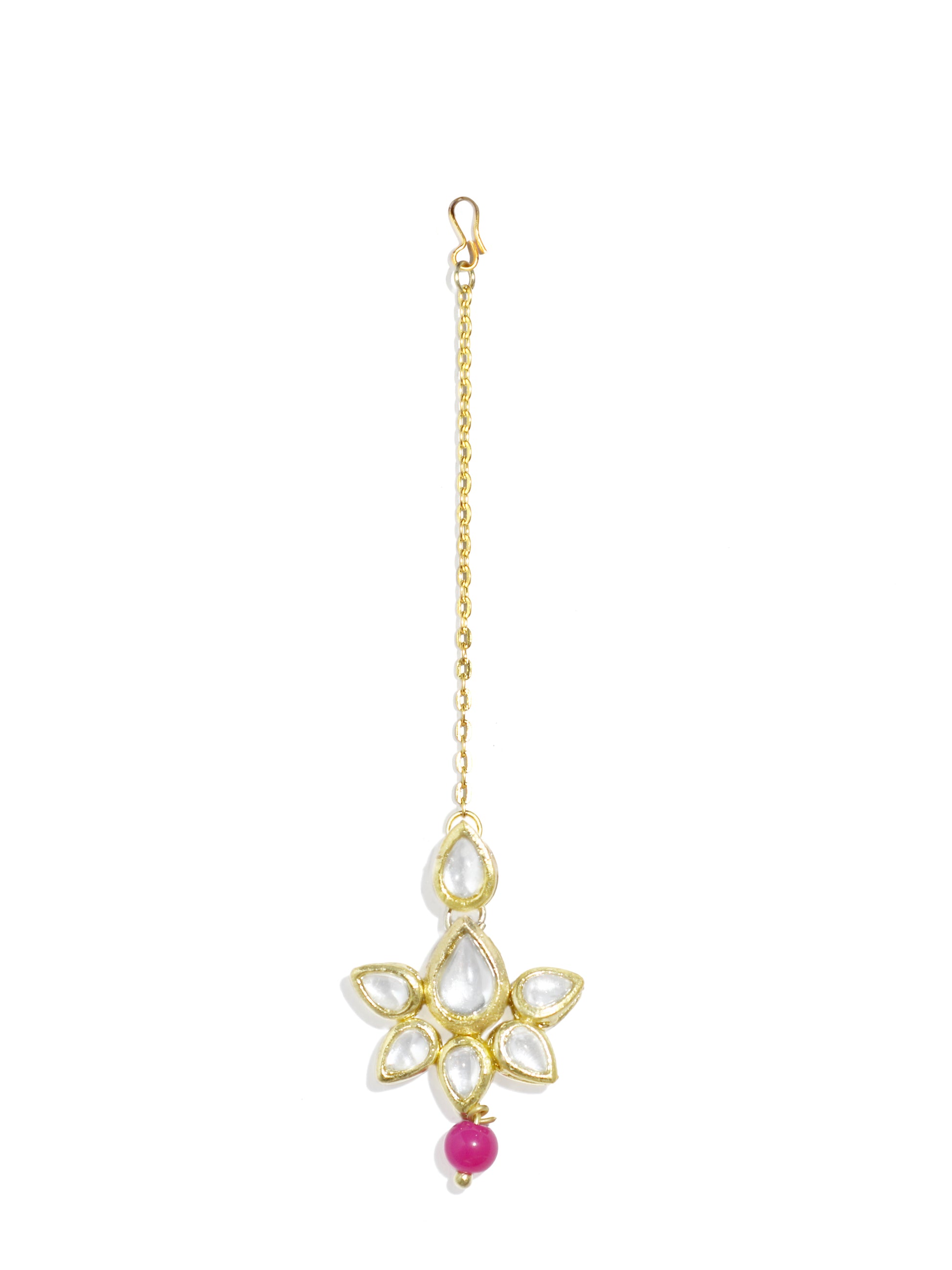 - Pink Beads Studded Kundan Choker Necklace with Earrings and Maangtikka. It's Five Layer Micro Gold Plated and Embellished with Elegant Kundan for High Durability. Intricate high polish creates glamorous reflections and adds a luxurious look. Perfect for Weddings, Festivals, Traditional Occasions. Best when paired with any Indian outfit.