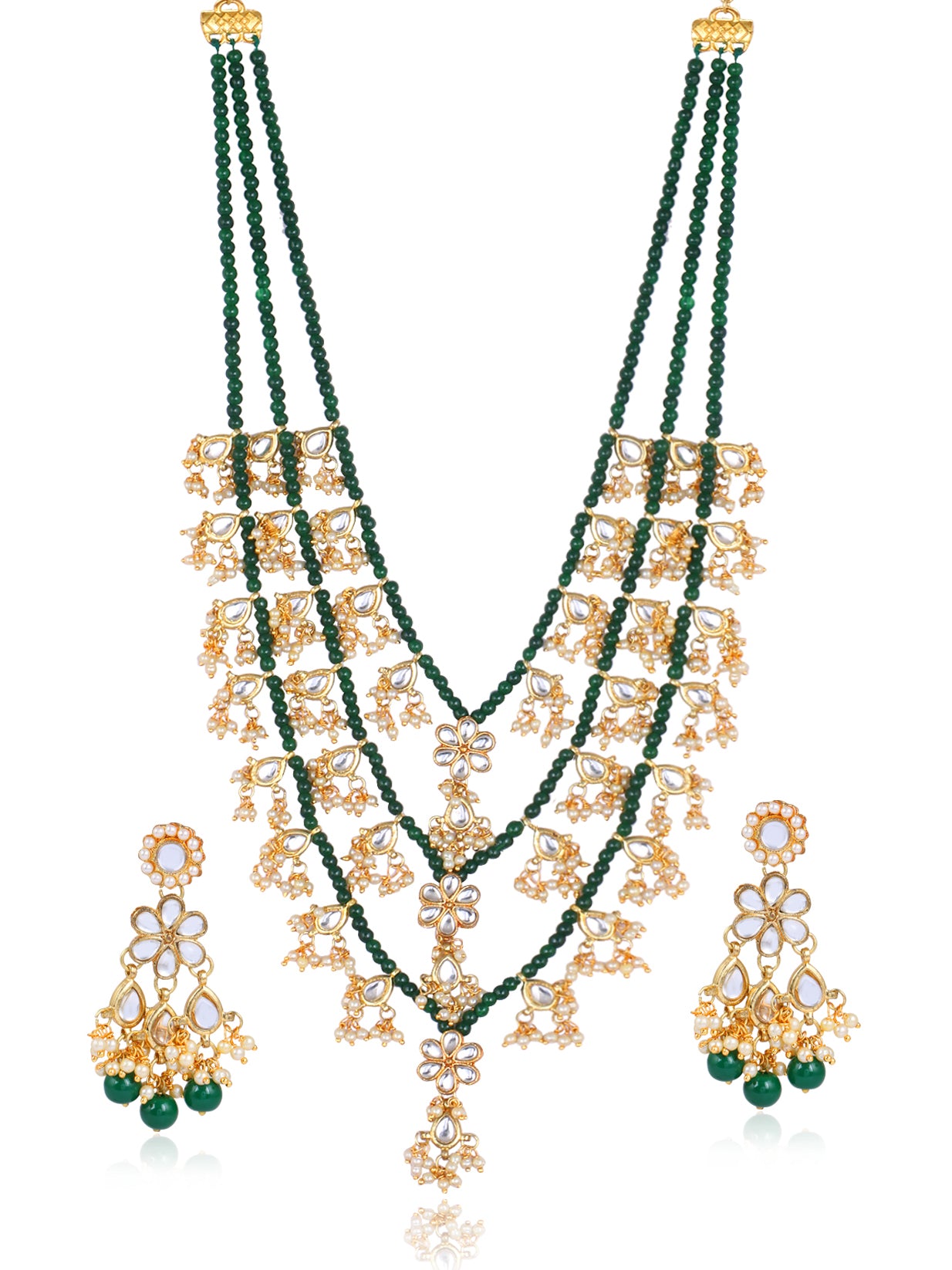 KARATCART Gold Plated Green Beads Kundan Long Jewellery Set for Women