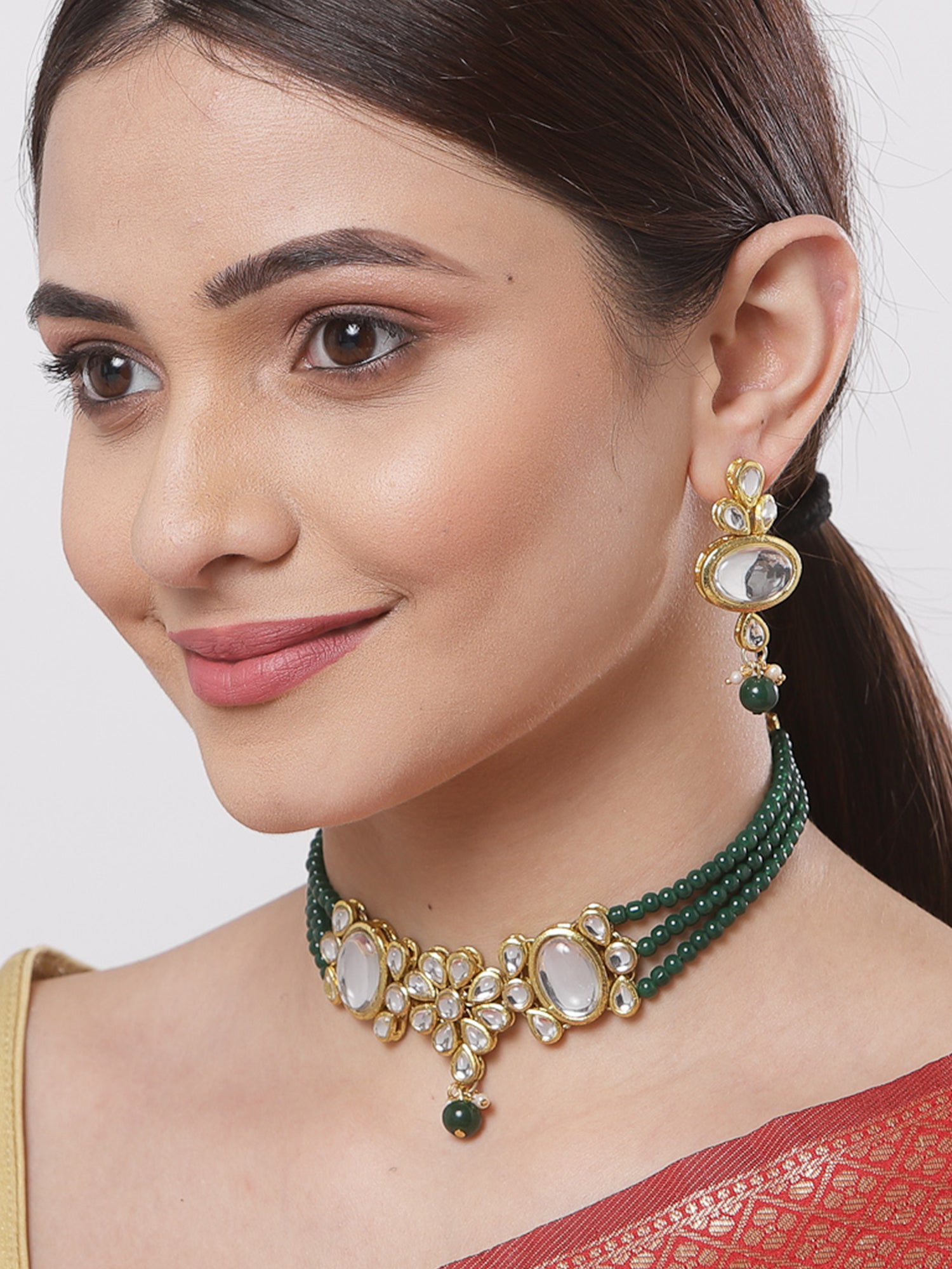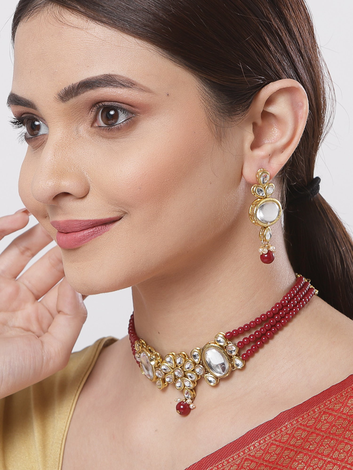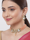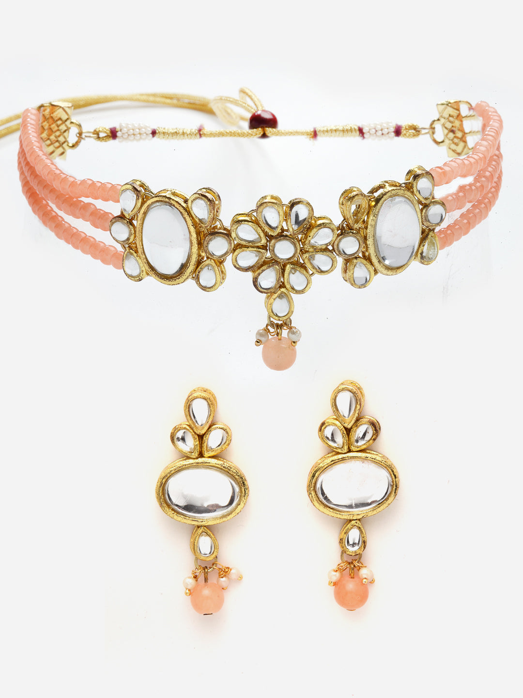 - Peach Multistrand Embellished Necklace Set. It's Five Layer Micro Gold Plated and Embellished with Kundan for High Durability. Intricate high polish creates glamorous reflections and adds a luxurious look. Perfect for Weddings, Festivals, Traditional Occasions. Best when paired with any Indian outfit.