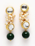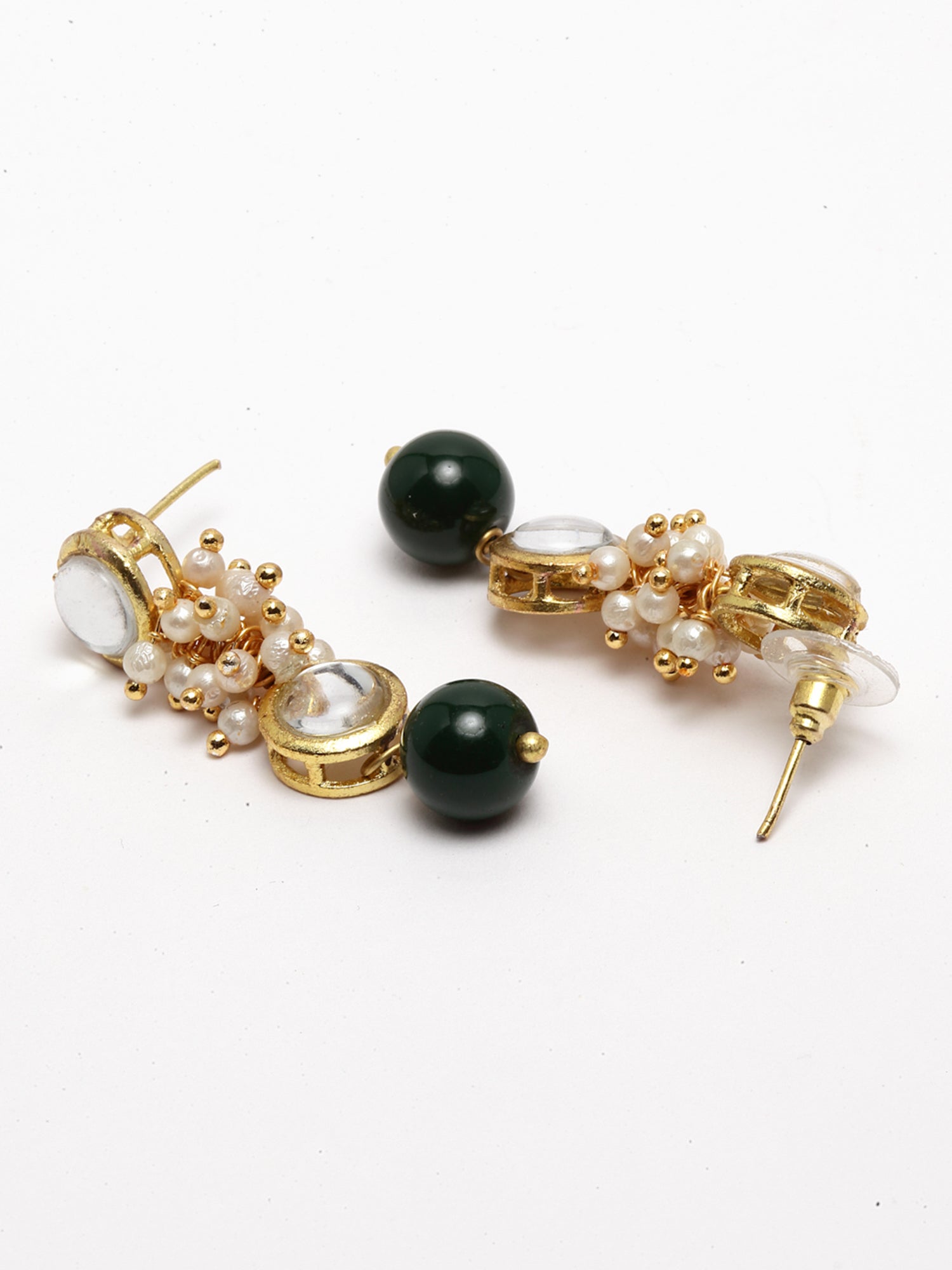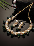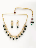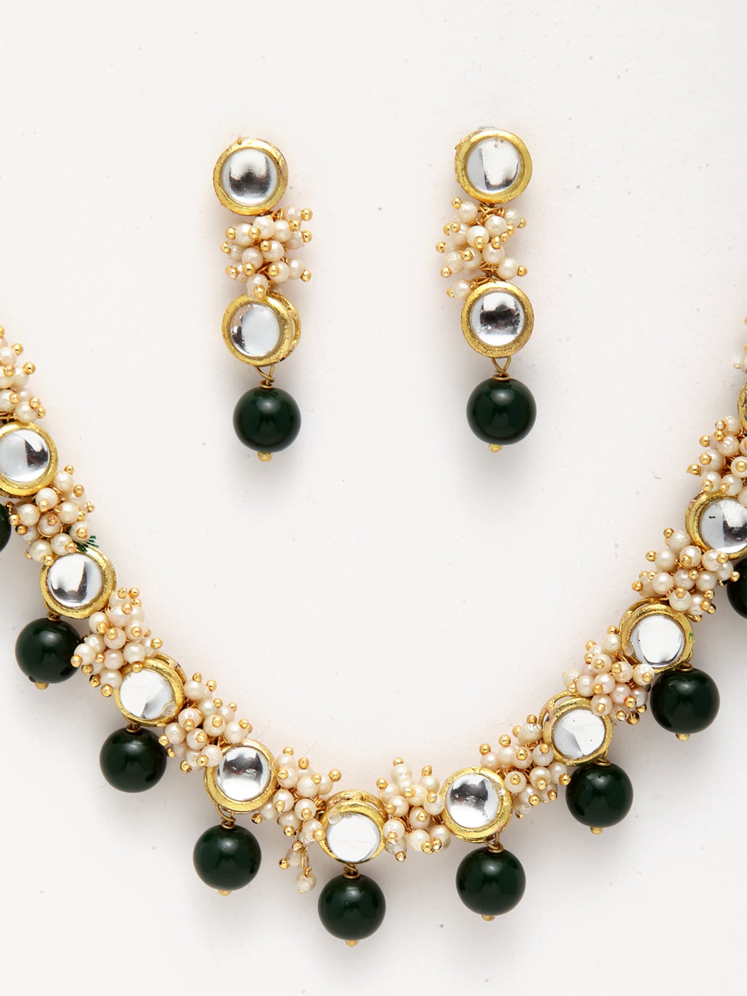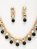 Gold-Plated Green Beads and Pearl Ball Studded Handcrafted Kundan Necklace Set