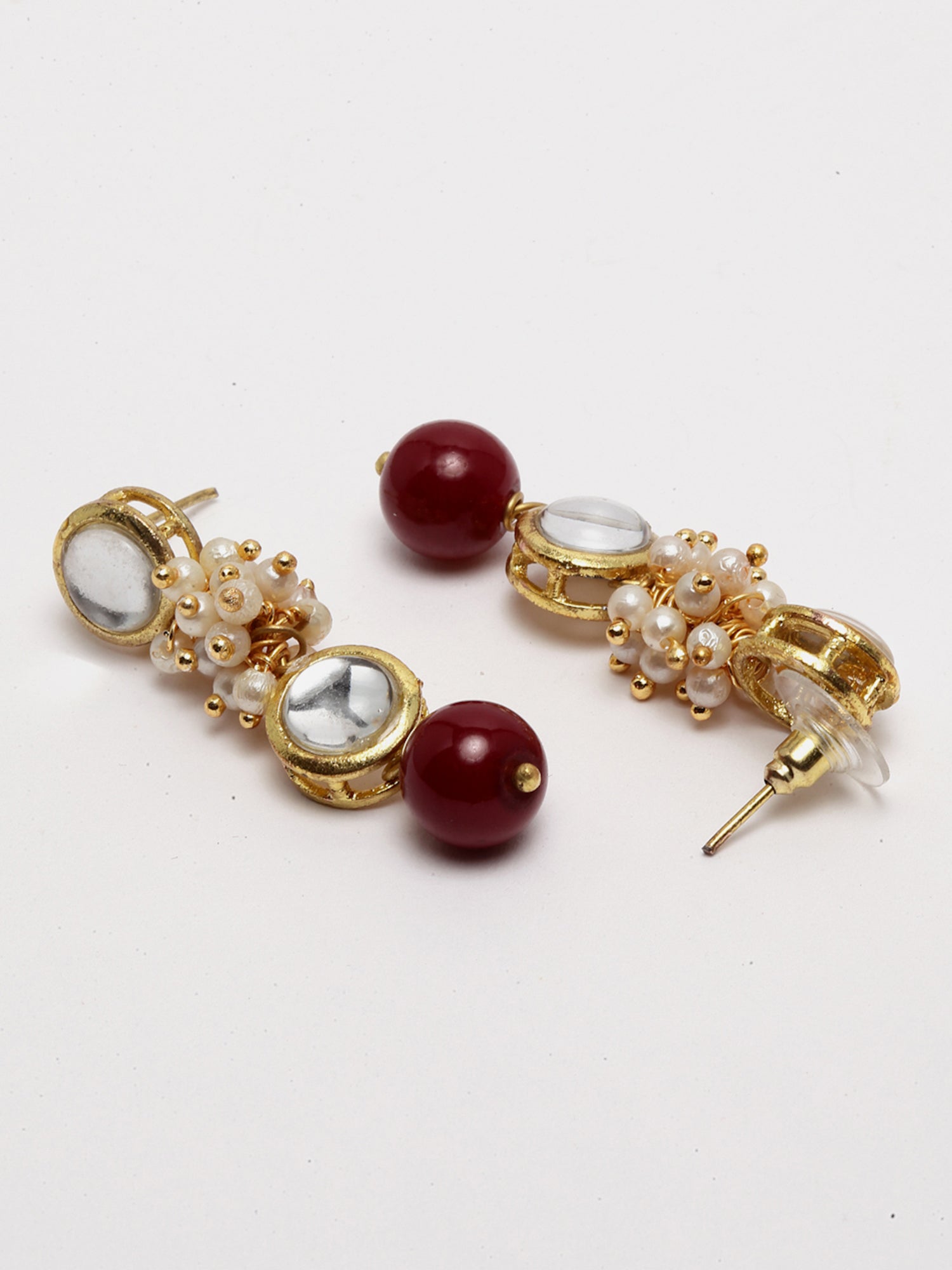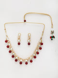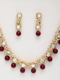 Gold-Plated Red Beads and Pearl Ball Studded Handcrafted Kundan Necklace Set