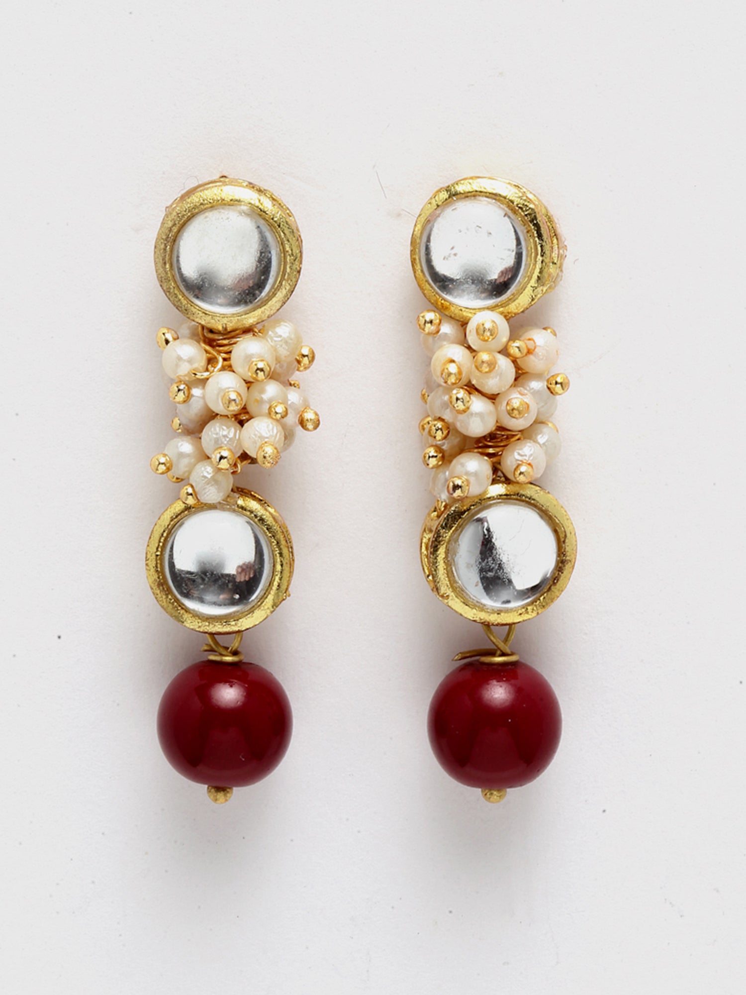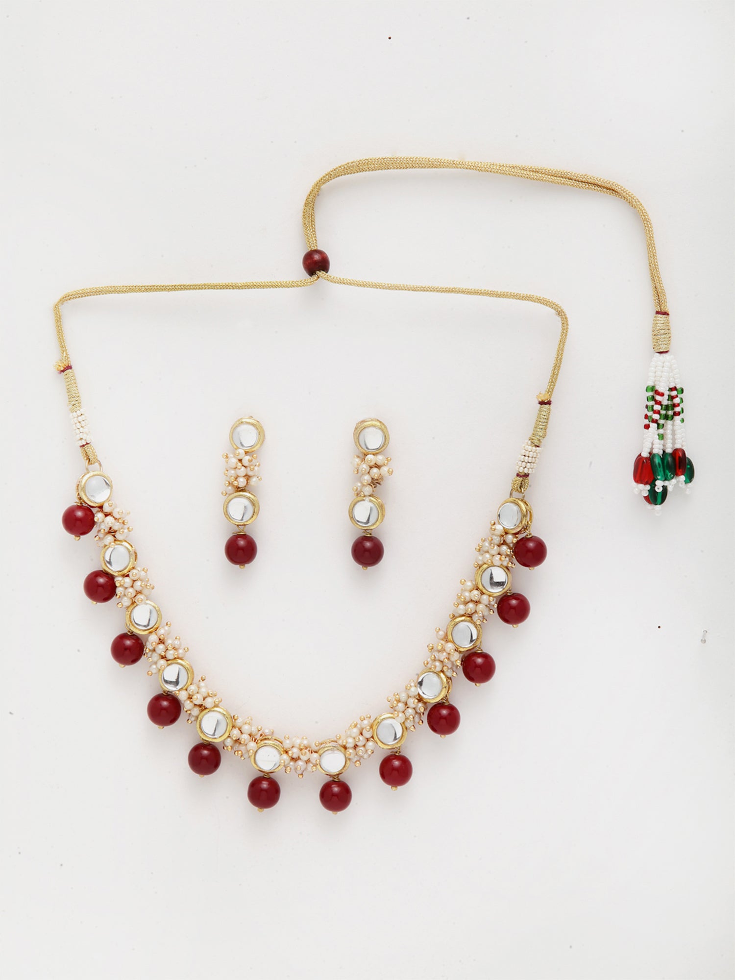- Gold-Plated Red Beads and Pearl Ball Studded Handcrafted Kundan Choker Necklace Set. It's Five Layer Micro Gold Plated and Embellished with Elegant Kundan for High Durability. Intricate high polish creates glamorous reflections and adds a luxurious look. Perfect for Weddings, Festivals, Traditional Occasions. Best when paired with any Indian outfit.