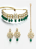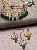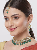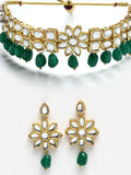 Floral Design Green Stone and Kundan Studded Choker Necklace Set