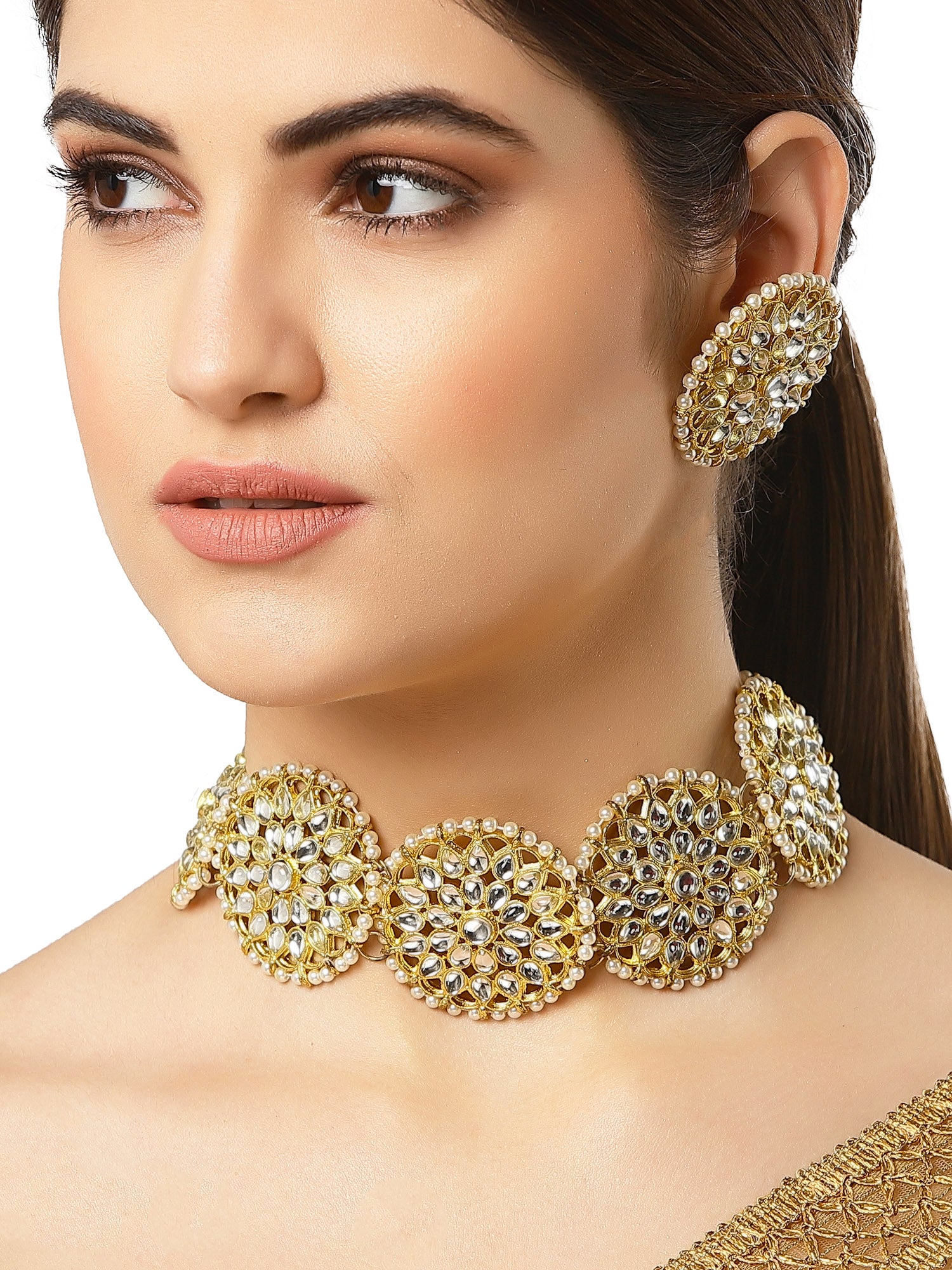 - Karatcart Traditional Gold Plated Kundan Floral Choker Necklace Set for Women. It is made with high-quality Kundan Stones which makes them very skin-friendly. Perfect for Weddings, Parties, Festivals, and Traditional Occasions.