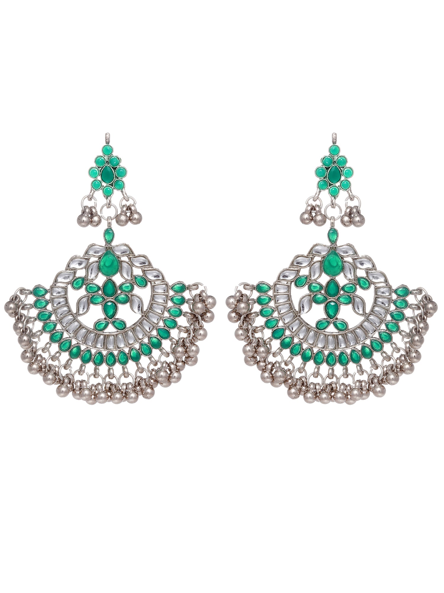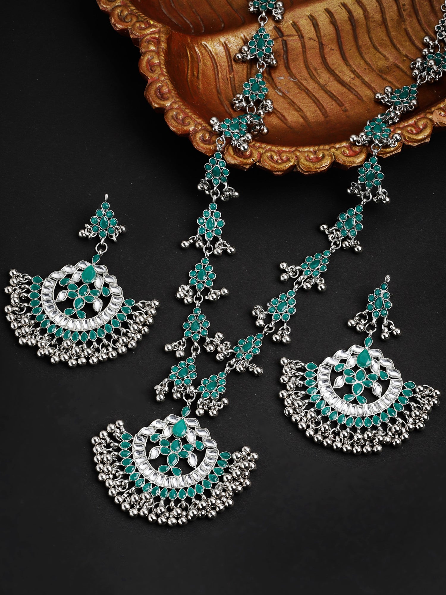 - Karatcart Oxidised Silver Green Kundan Studded Antique Rani Haar Necklace Set for Women. It is made with high-quality Kundan Stones which makes them very skin-friendly. Perfect for Weddings, Parties, Festivals, and Traditional Occasions.
