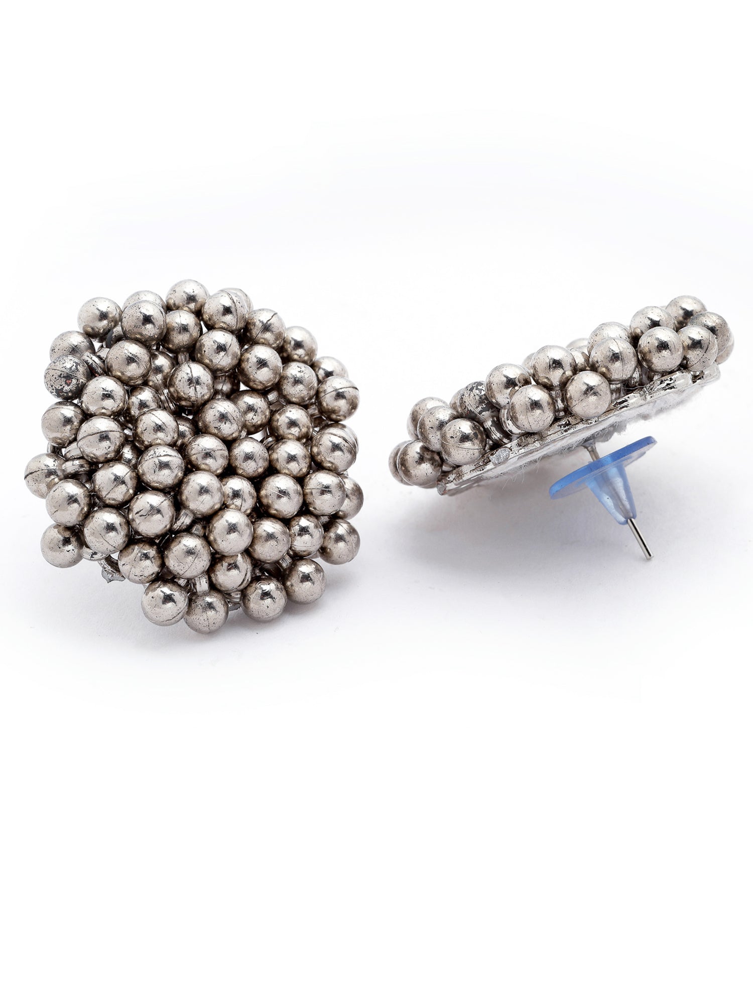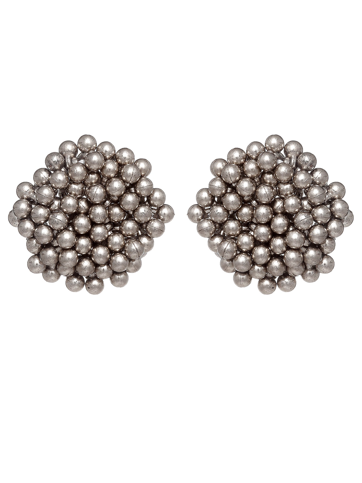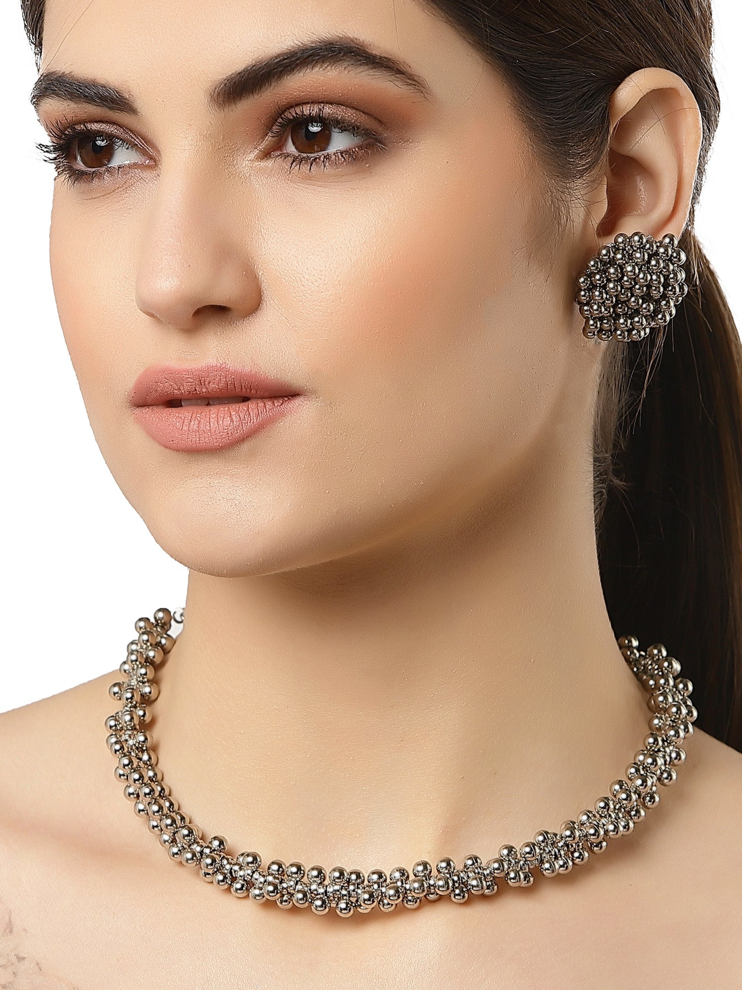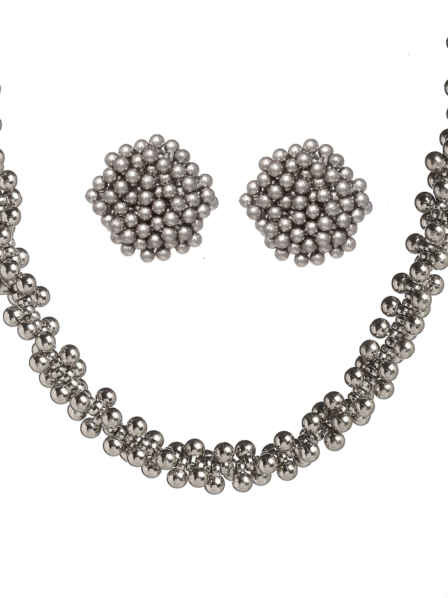 Oxidised Silver Tone Tassel Ball Choker Necklace Set