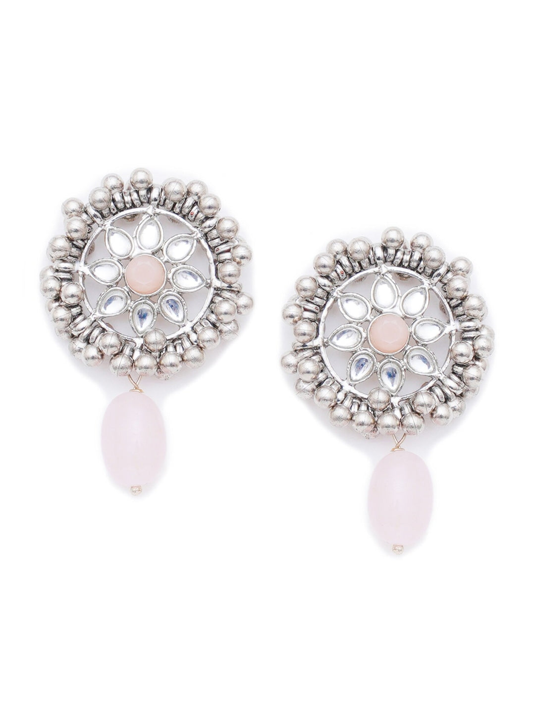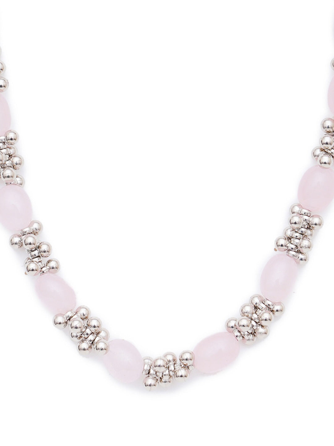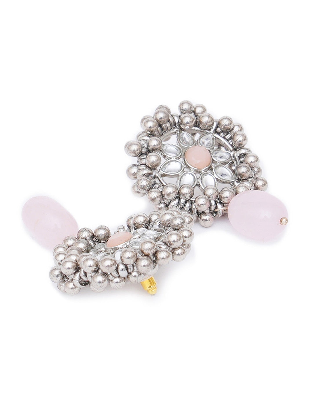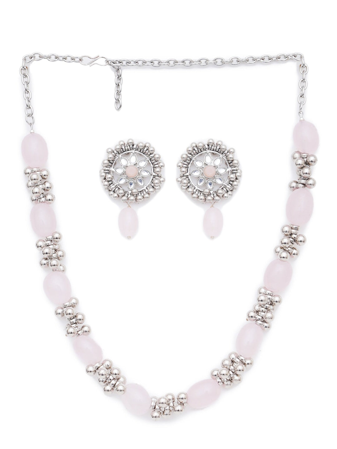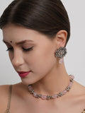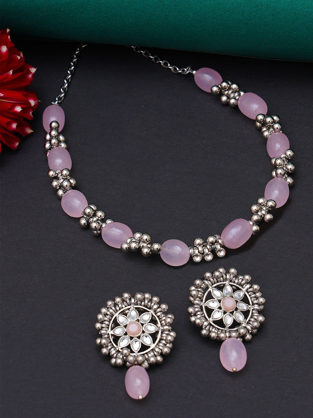 Women Silver-Plated & Pink Kundan-Studded Oxidized Choker Jewellery Set