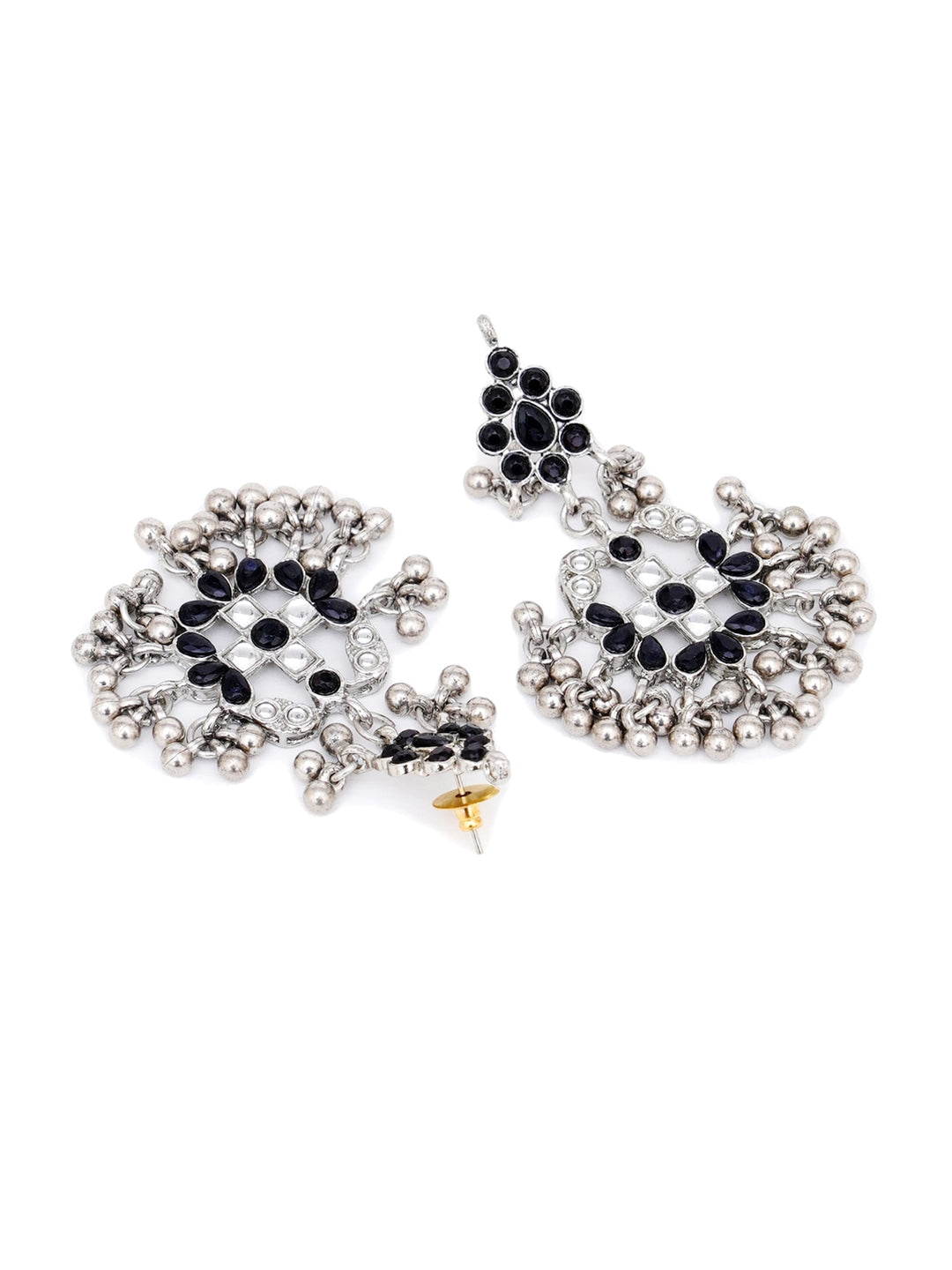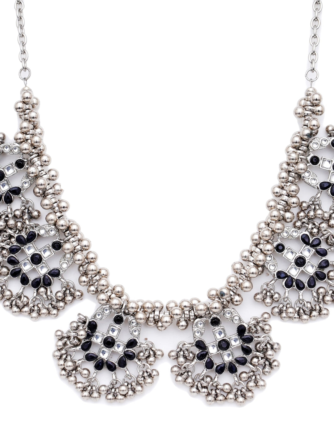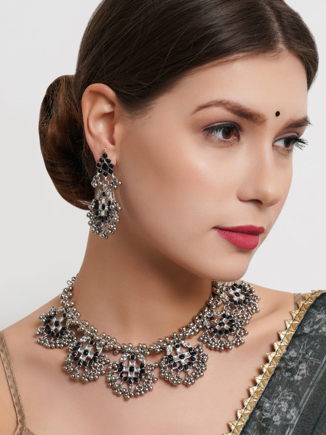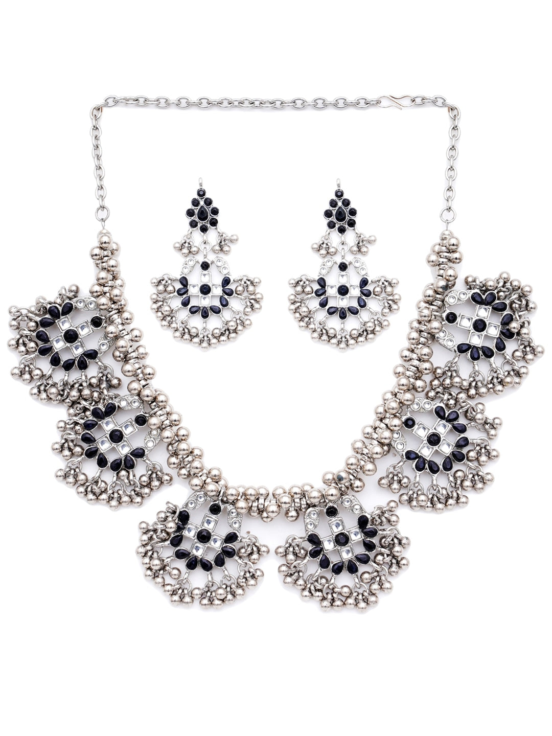 Women Black Oxidised Silver- Plated Stone Studded Jewellery Set