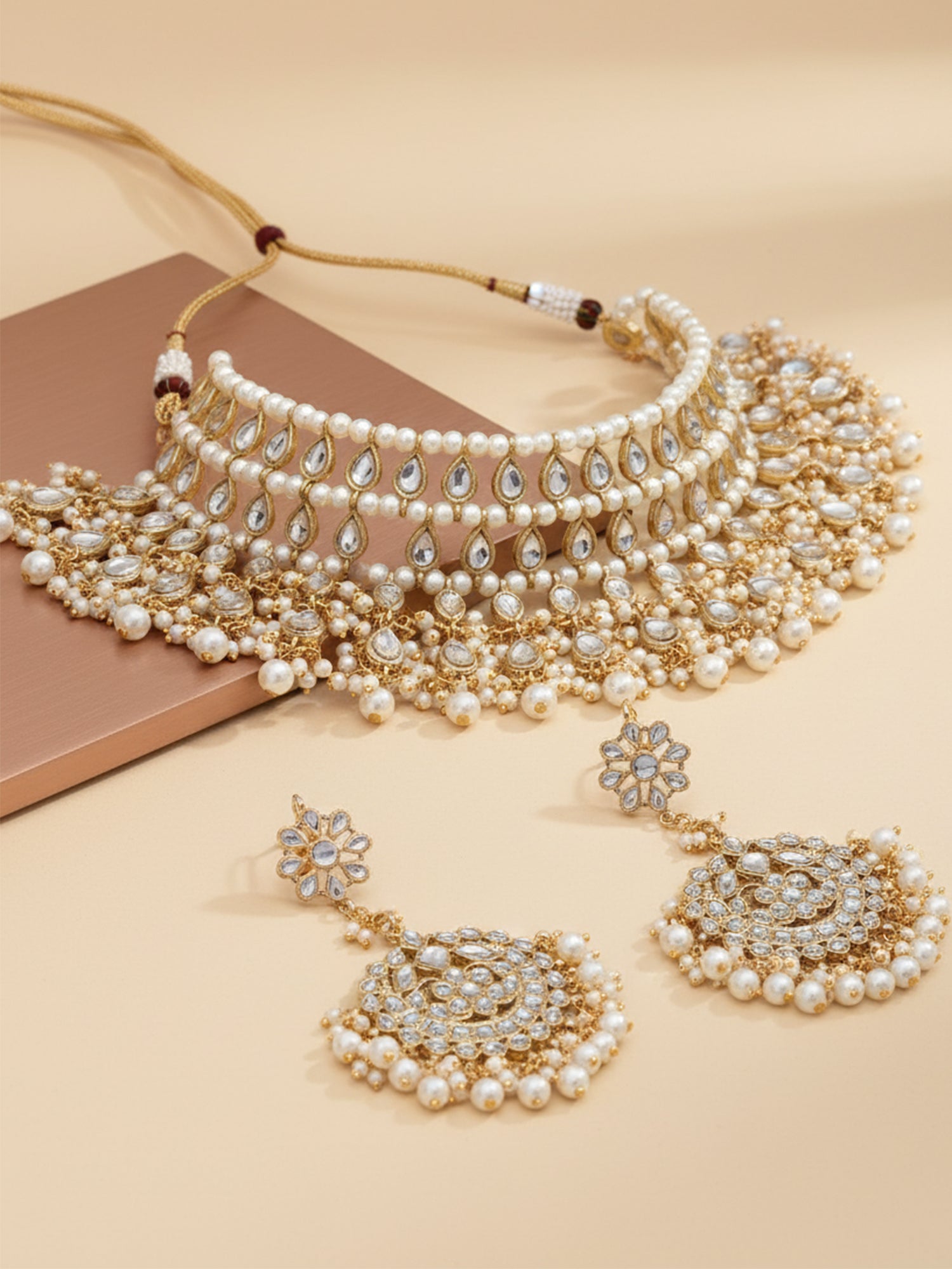 Gold-Plated & Kundan Stone-Studded Jewellery Set