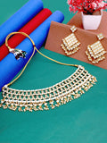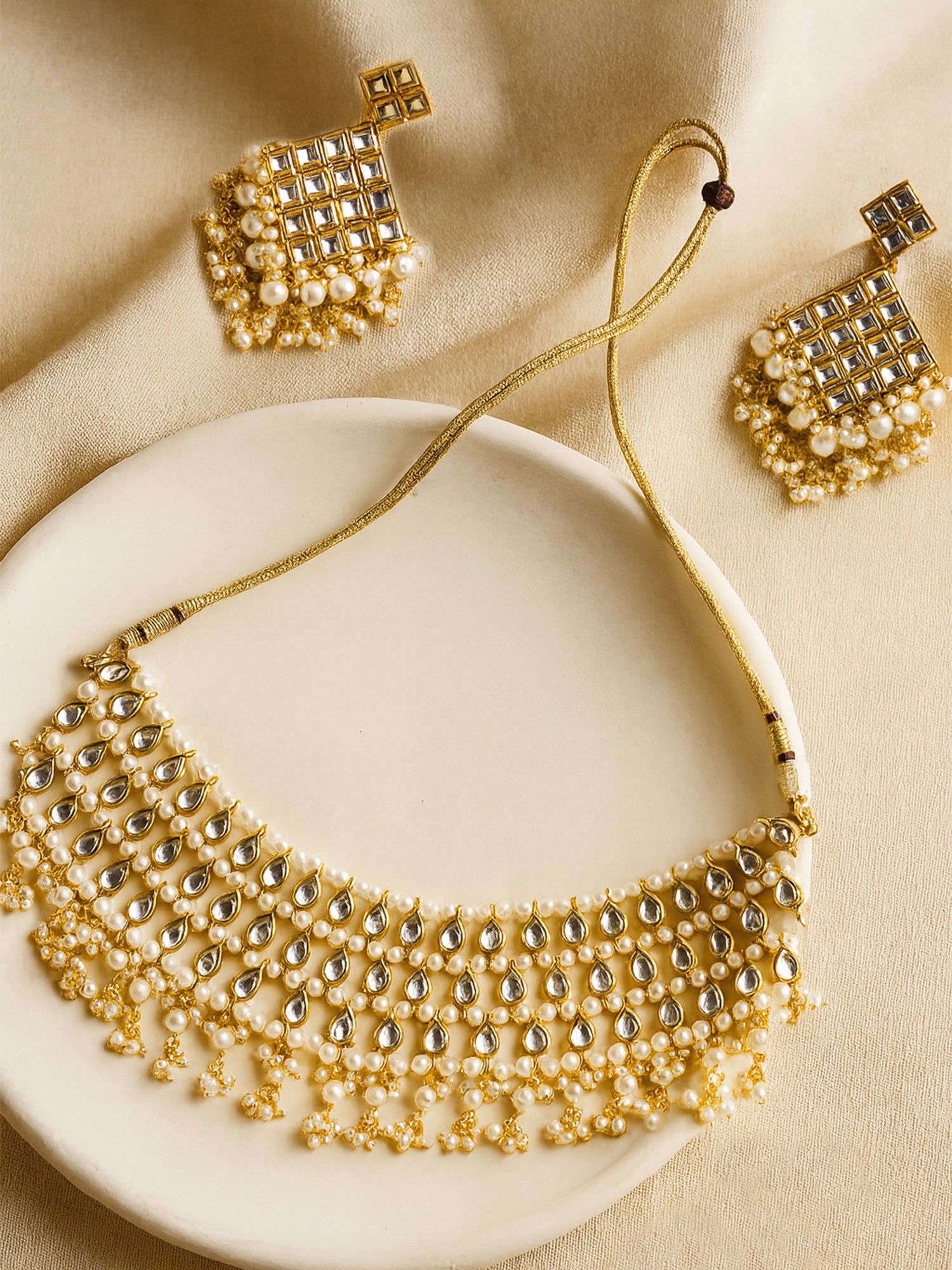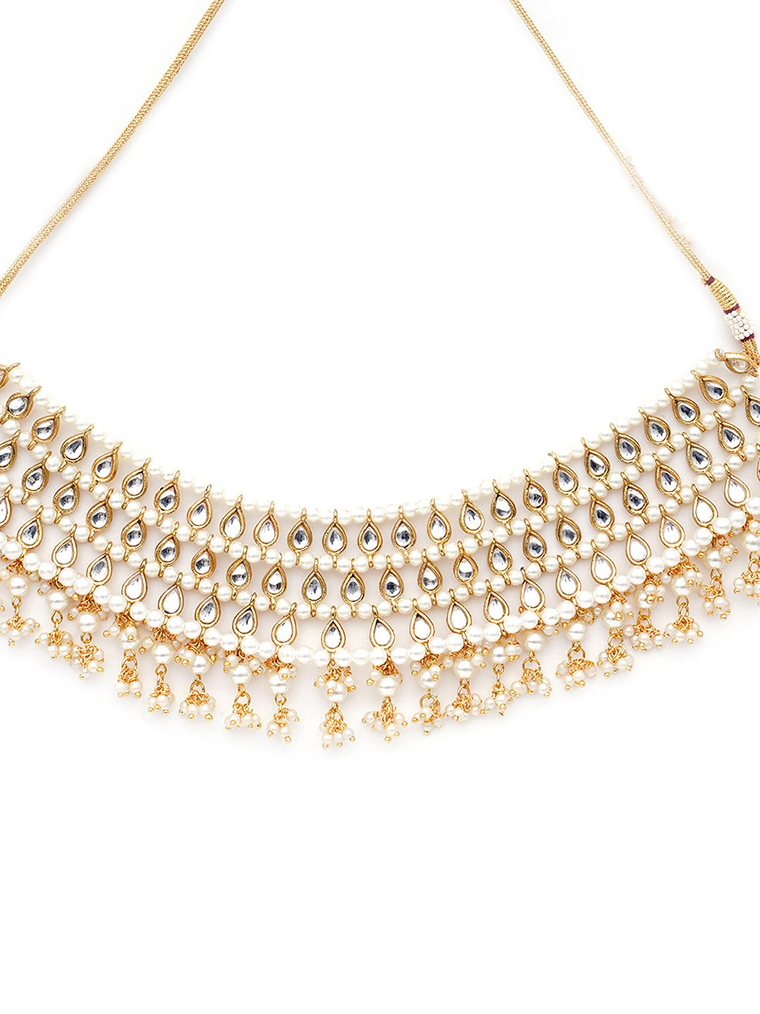 Gold-plated choker necklace has white Kundan-studded and pearl-beaded details