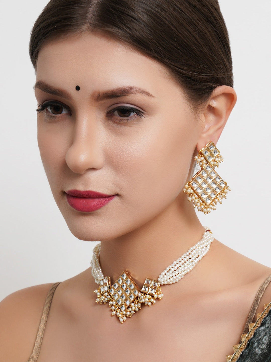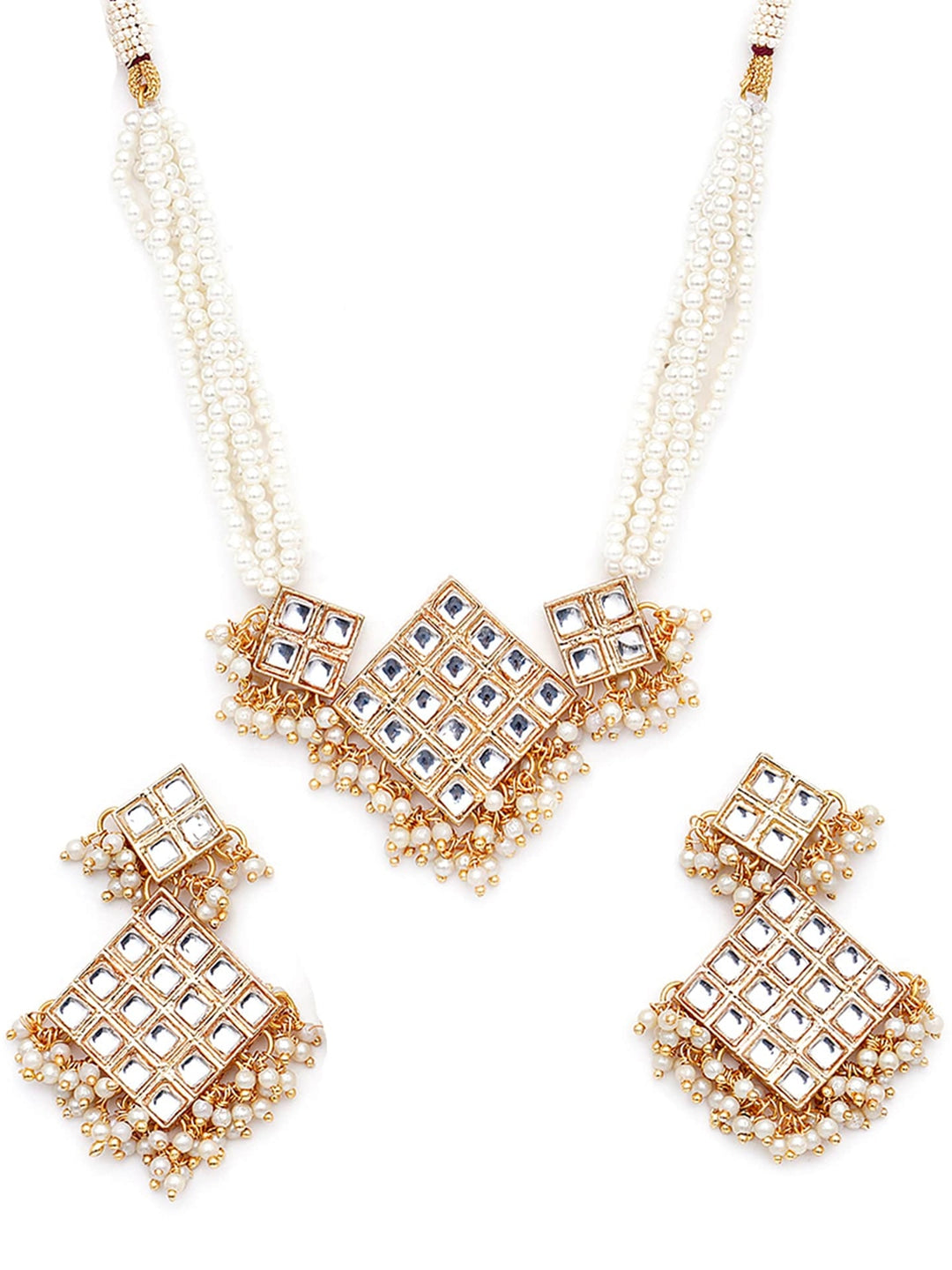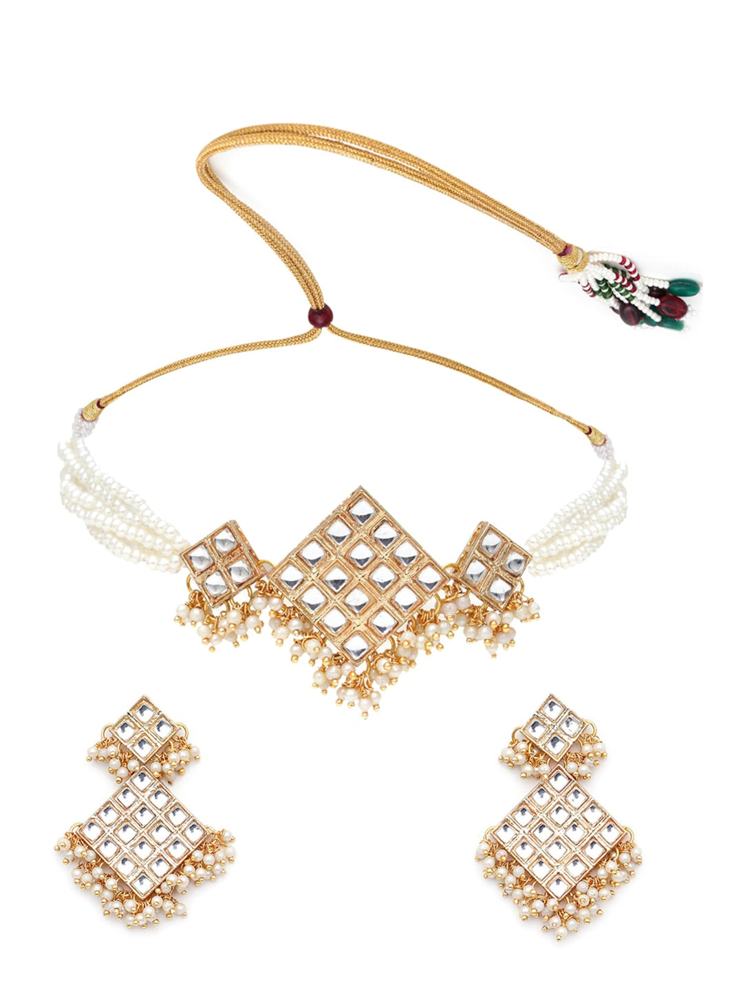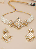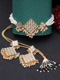 Gold-Plated & White Kundan & Beaded Choker Jewellery Set