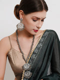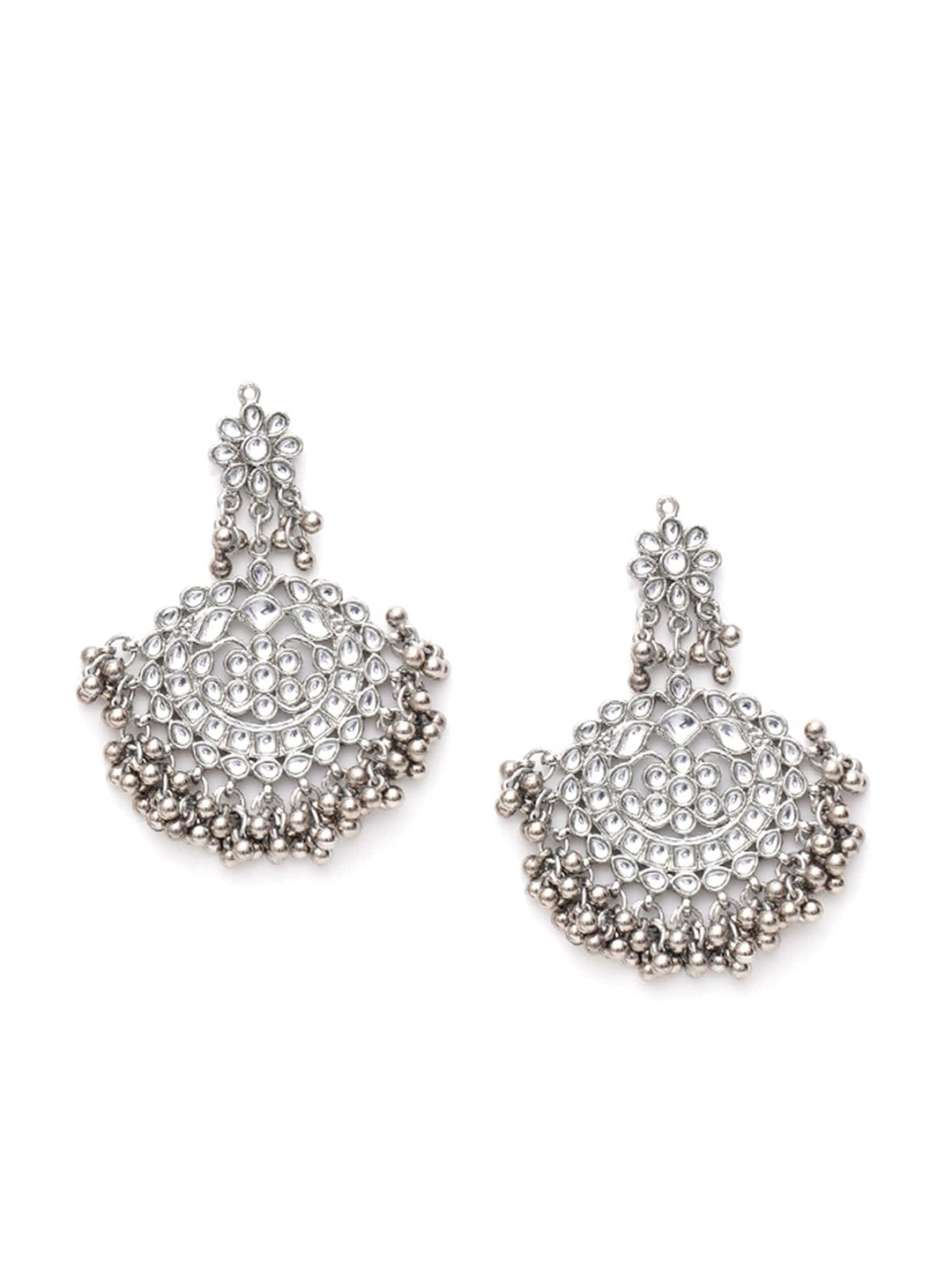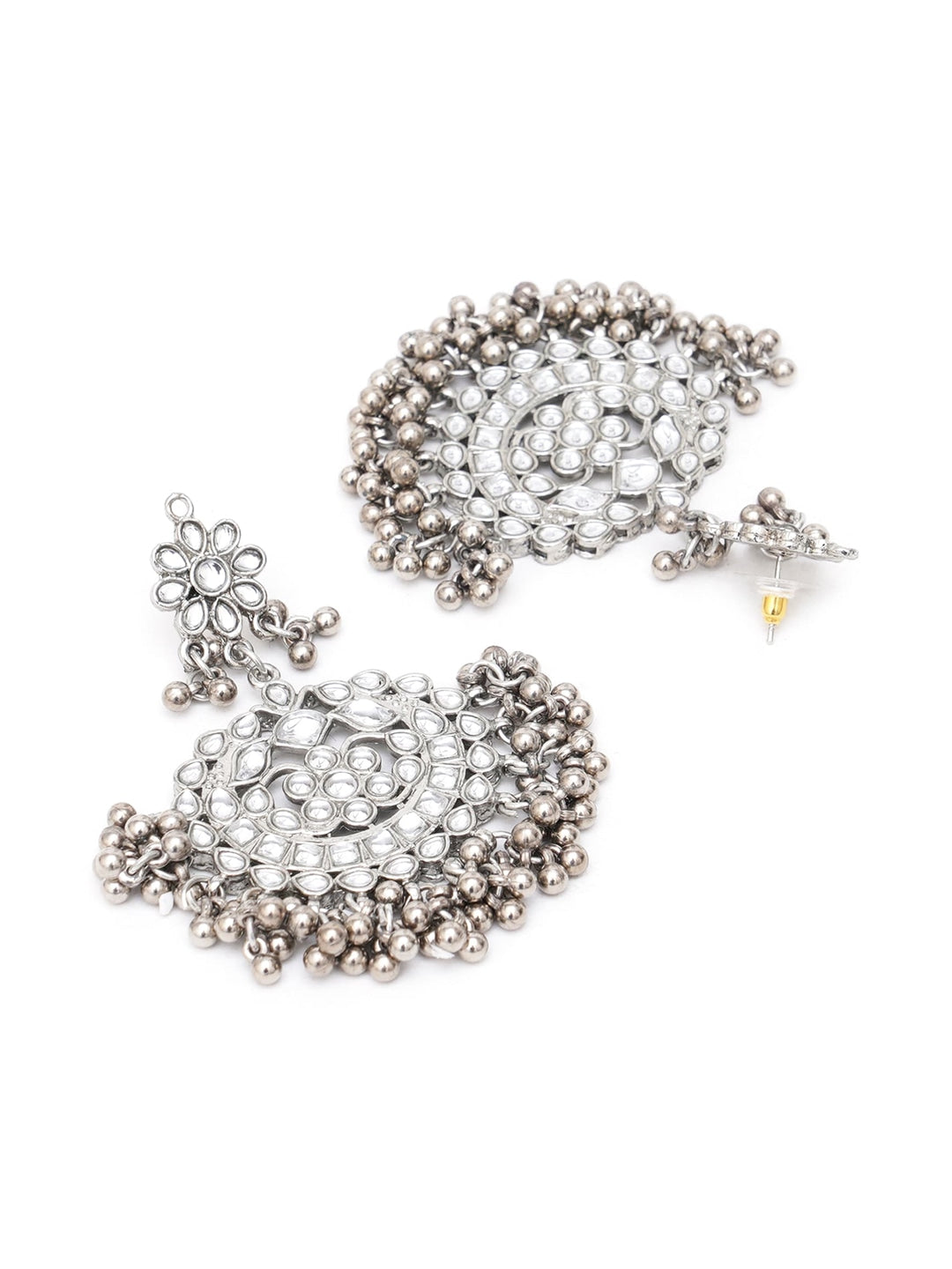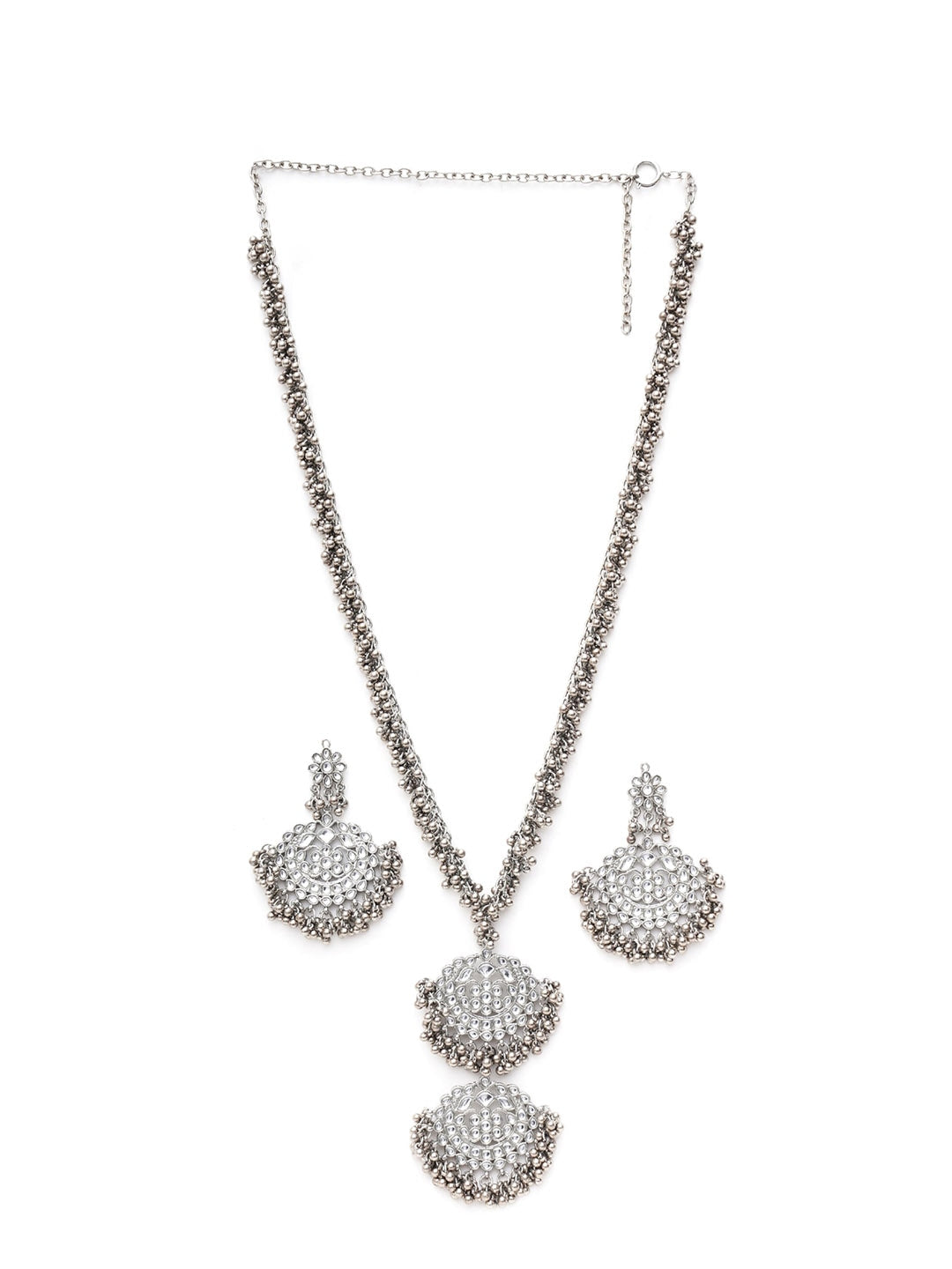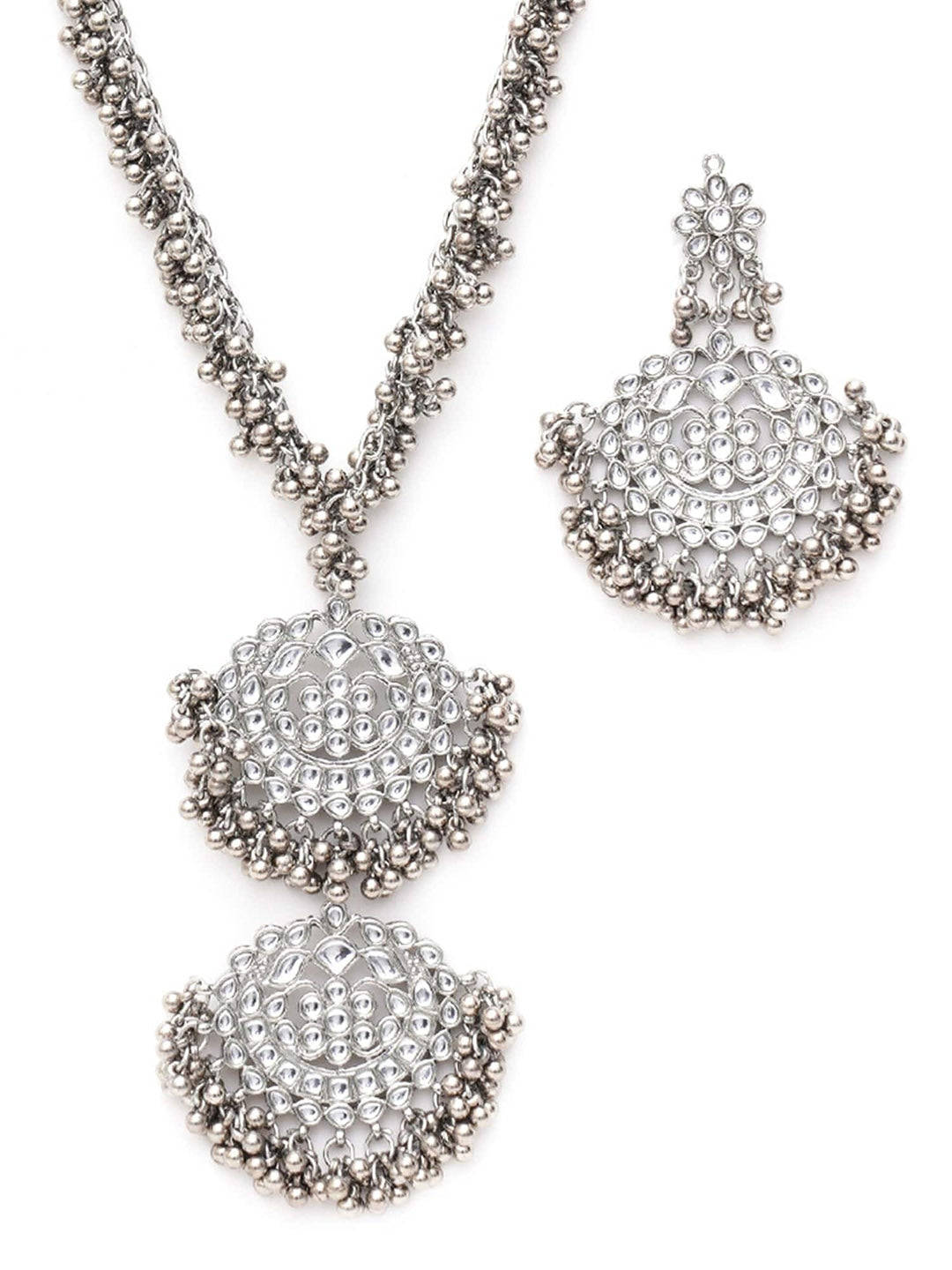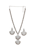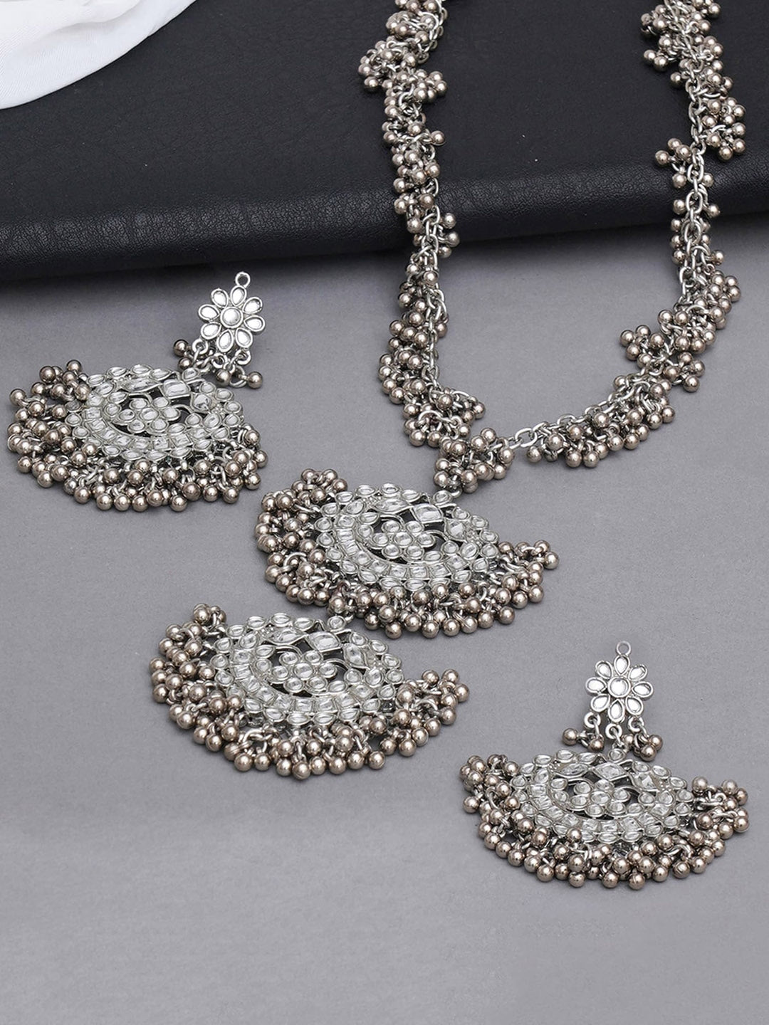 Oxidised Silver-Plated White Kundan-Studded Beaded Jewellery Set
