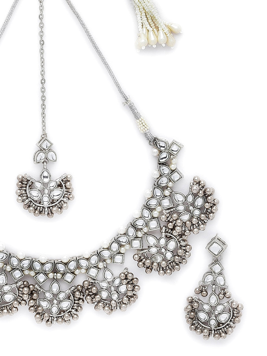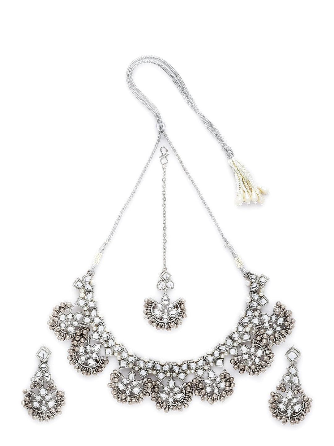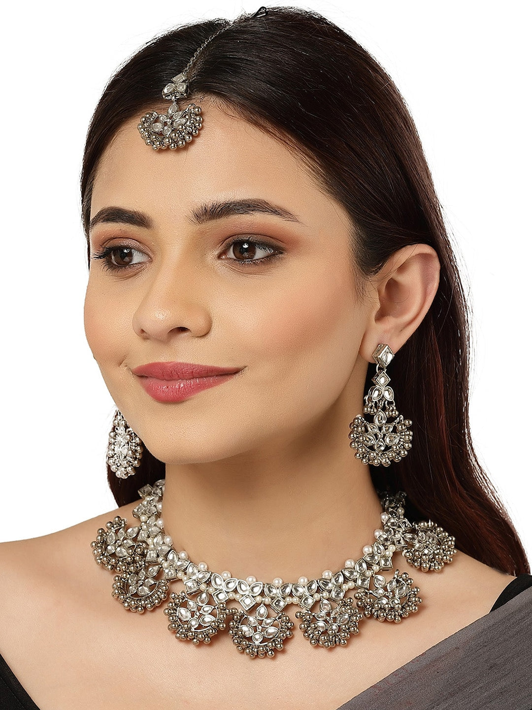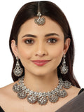 Oxidised Silver-Plated & Kundan Stone-Studded Jewellery Set