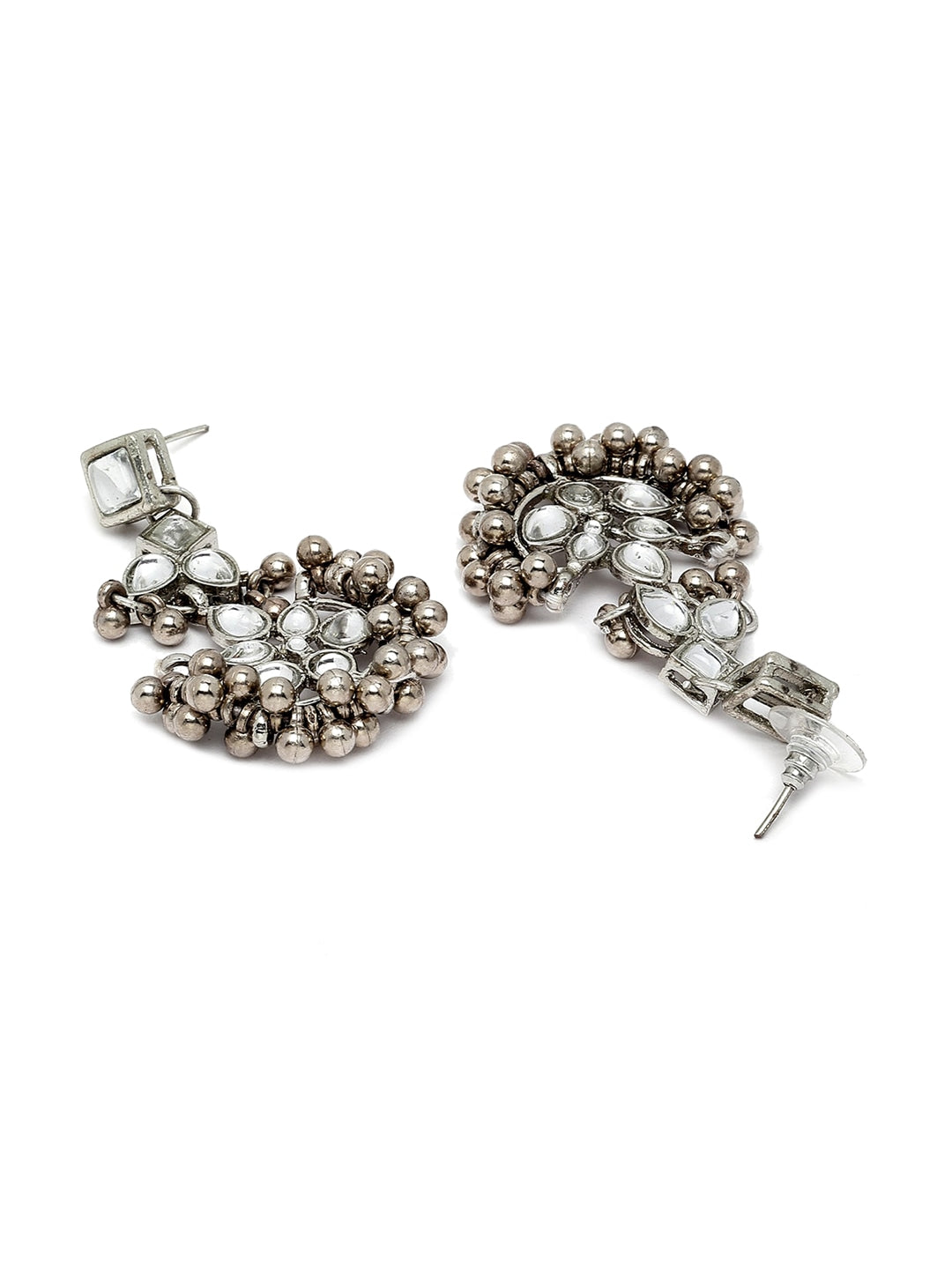 Oxidised Silver-plated and kundan stone-studded Maangtikka with s-hook closure