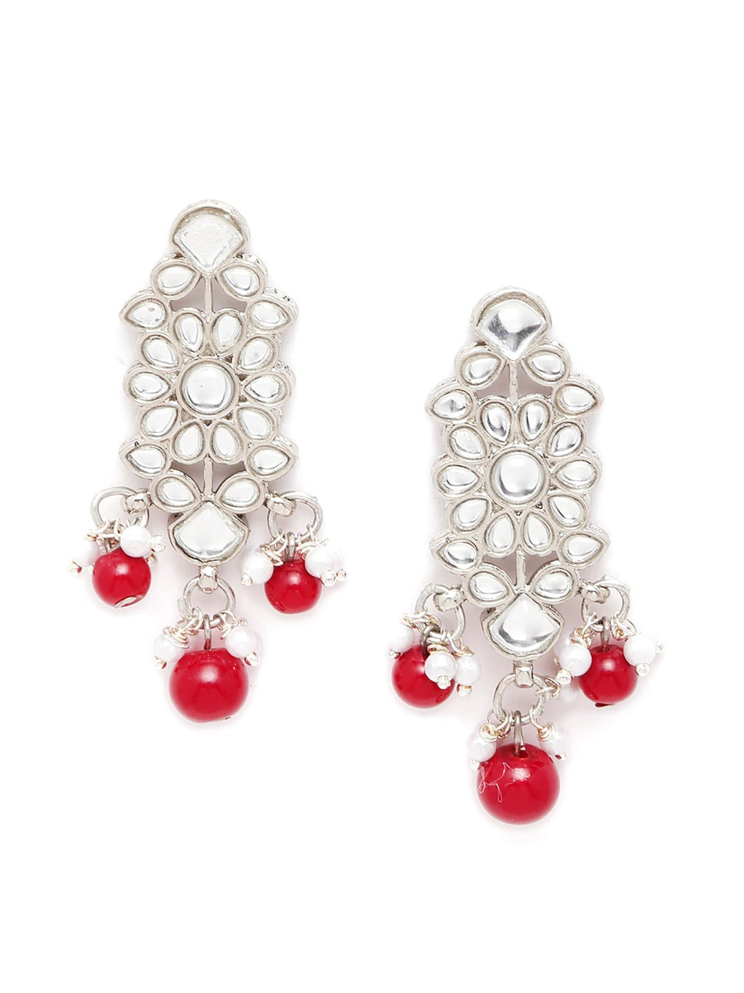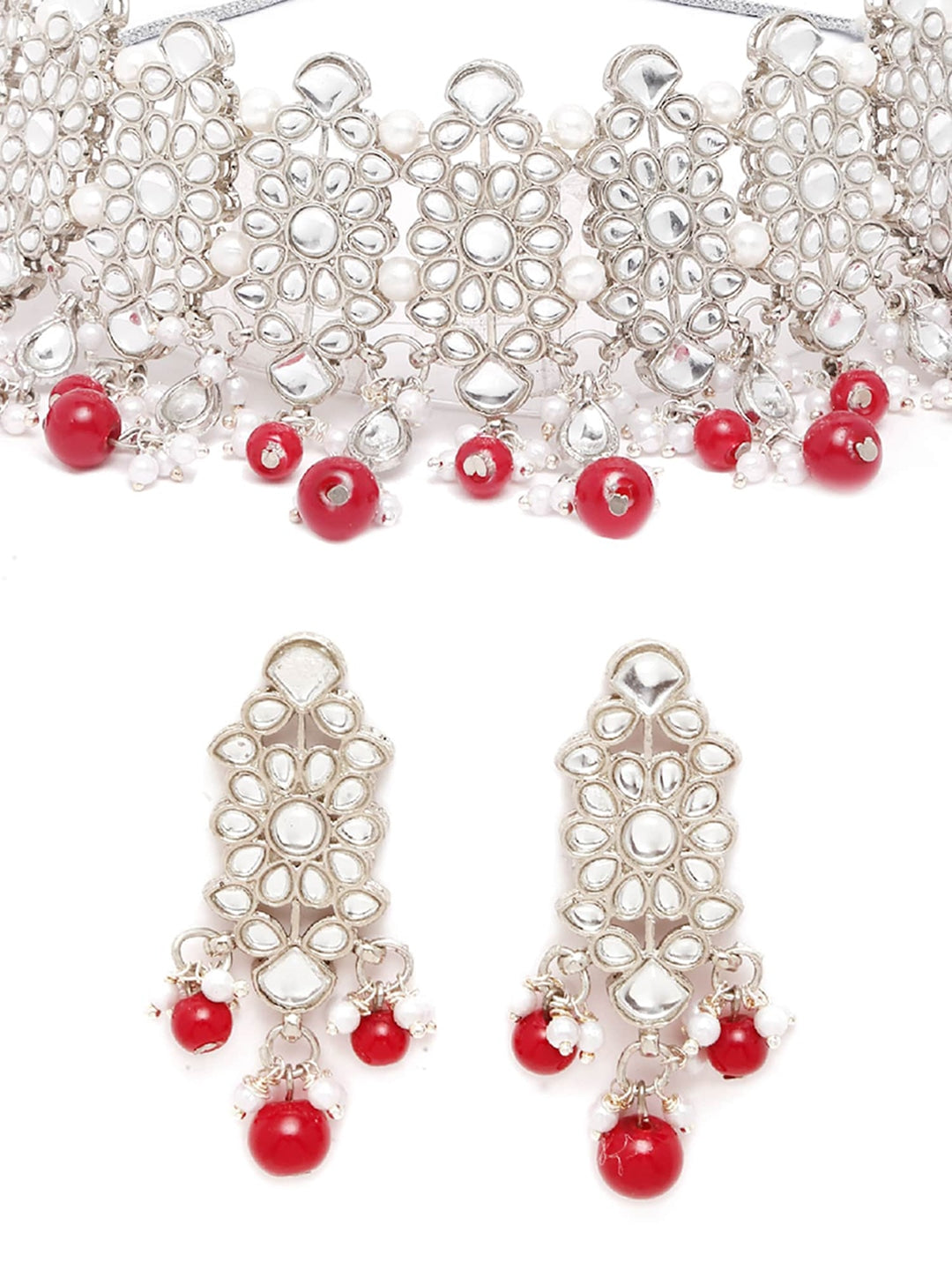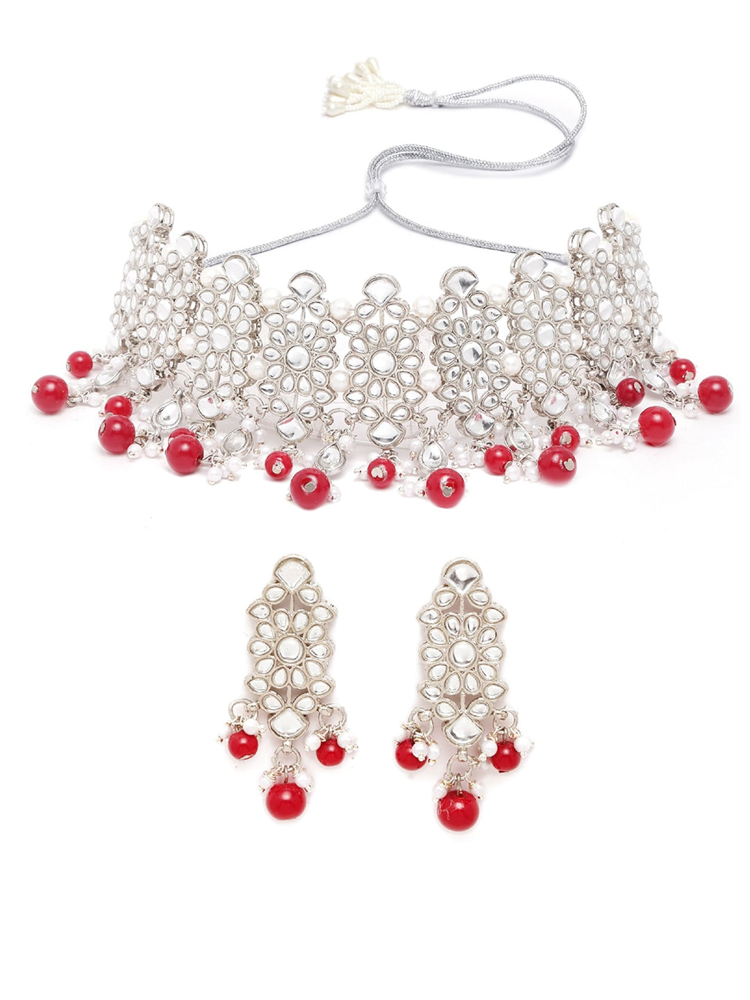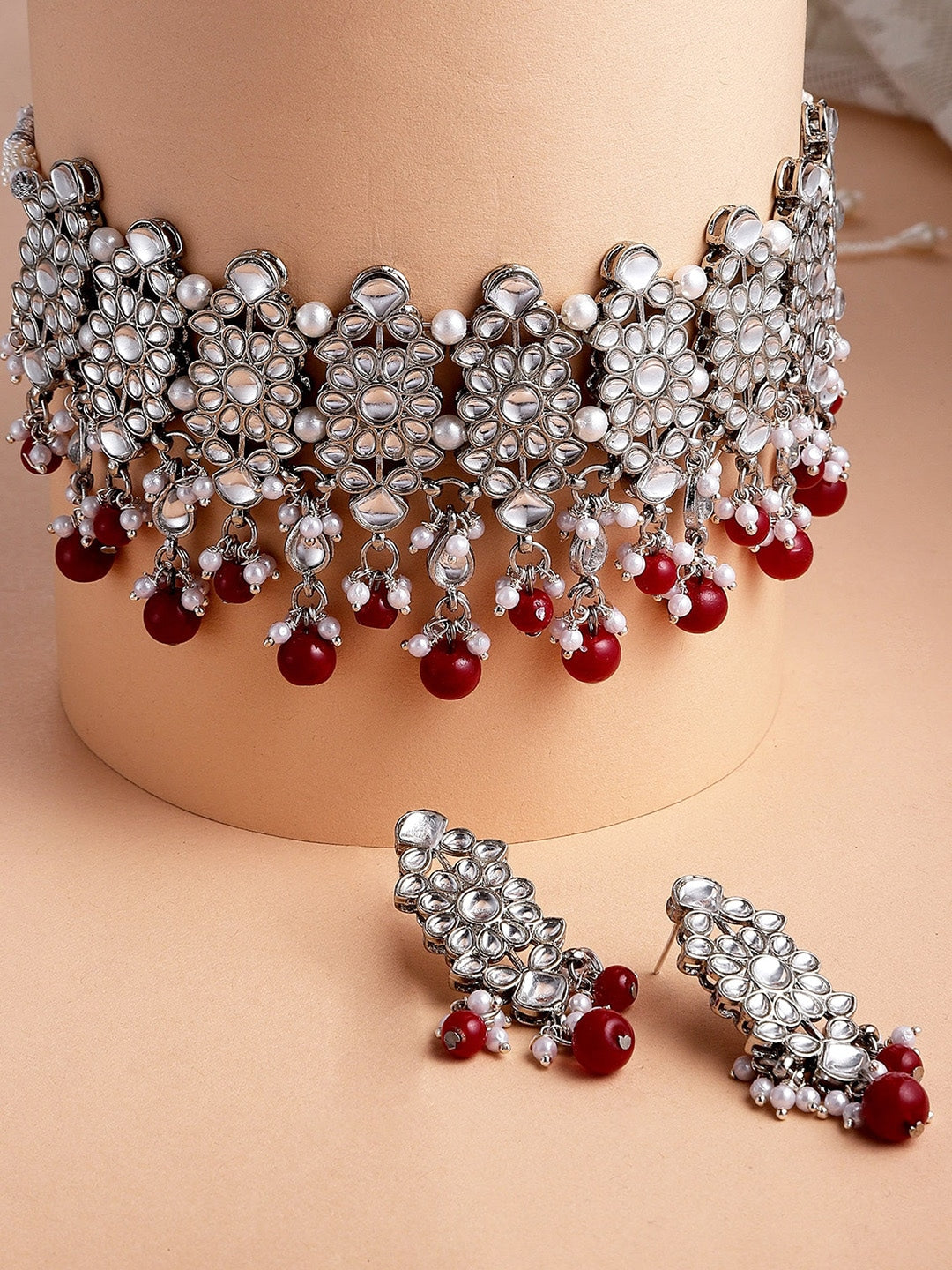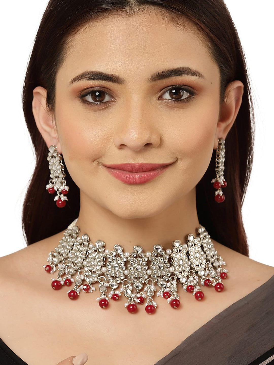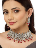 Oxidised Silver-Plated Red Kundan Studded Jewellery Set
